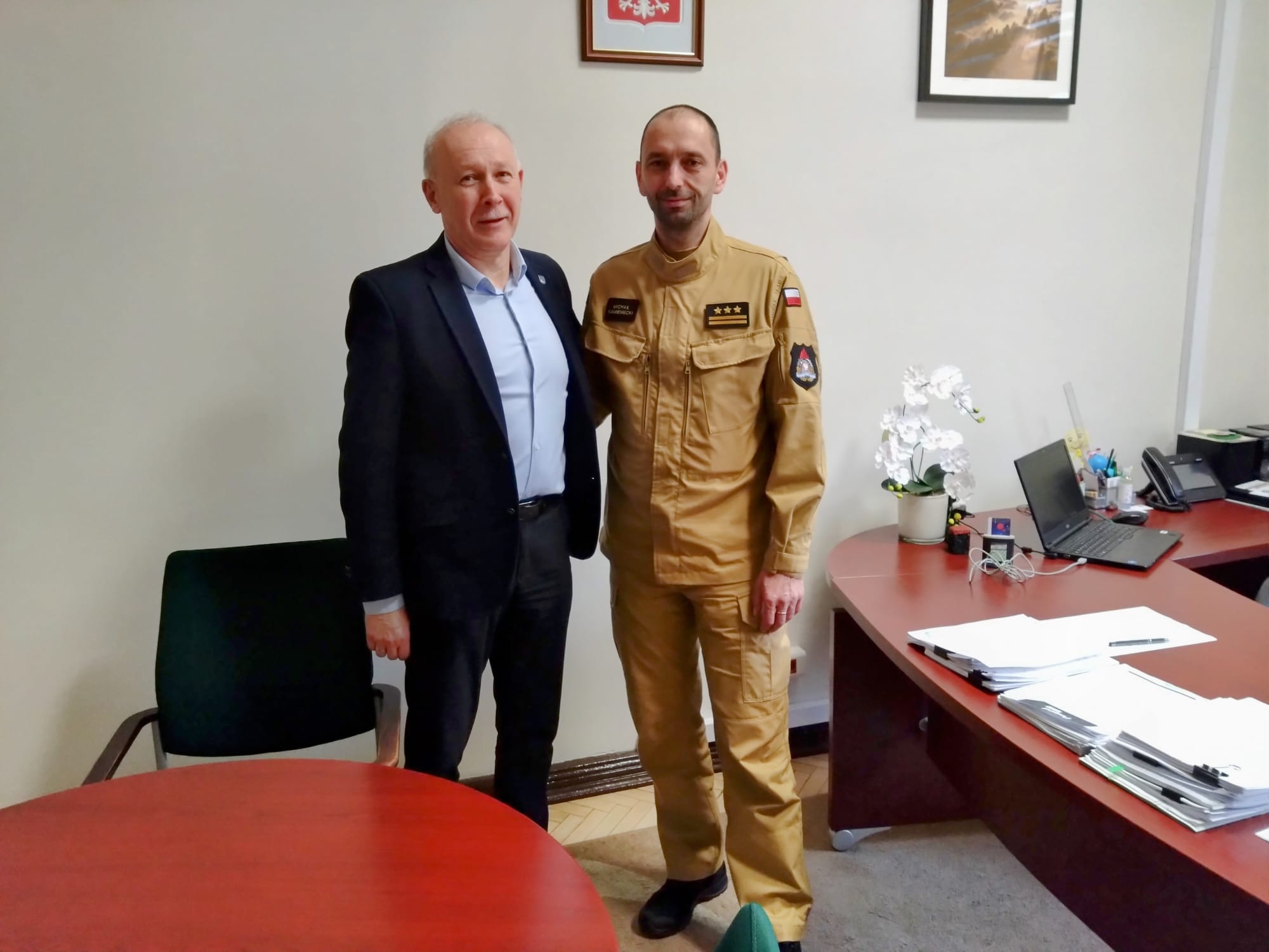 Po zakończonej w komendzie naradzie Warmińsko-Mazurski Komendant Wojewódzki Państwowej Straży Pożarnej st. bryg. Michał Kamieniecki spotkał się z obecnym wiceprezydentem Miasta Ełk i jednocześnie byłym Warmińsko-Mazurskim Komendantem Wojewódzkim PSP st. bryg. w st. spocz. Mirosławem Hołubowiczem.