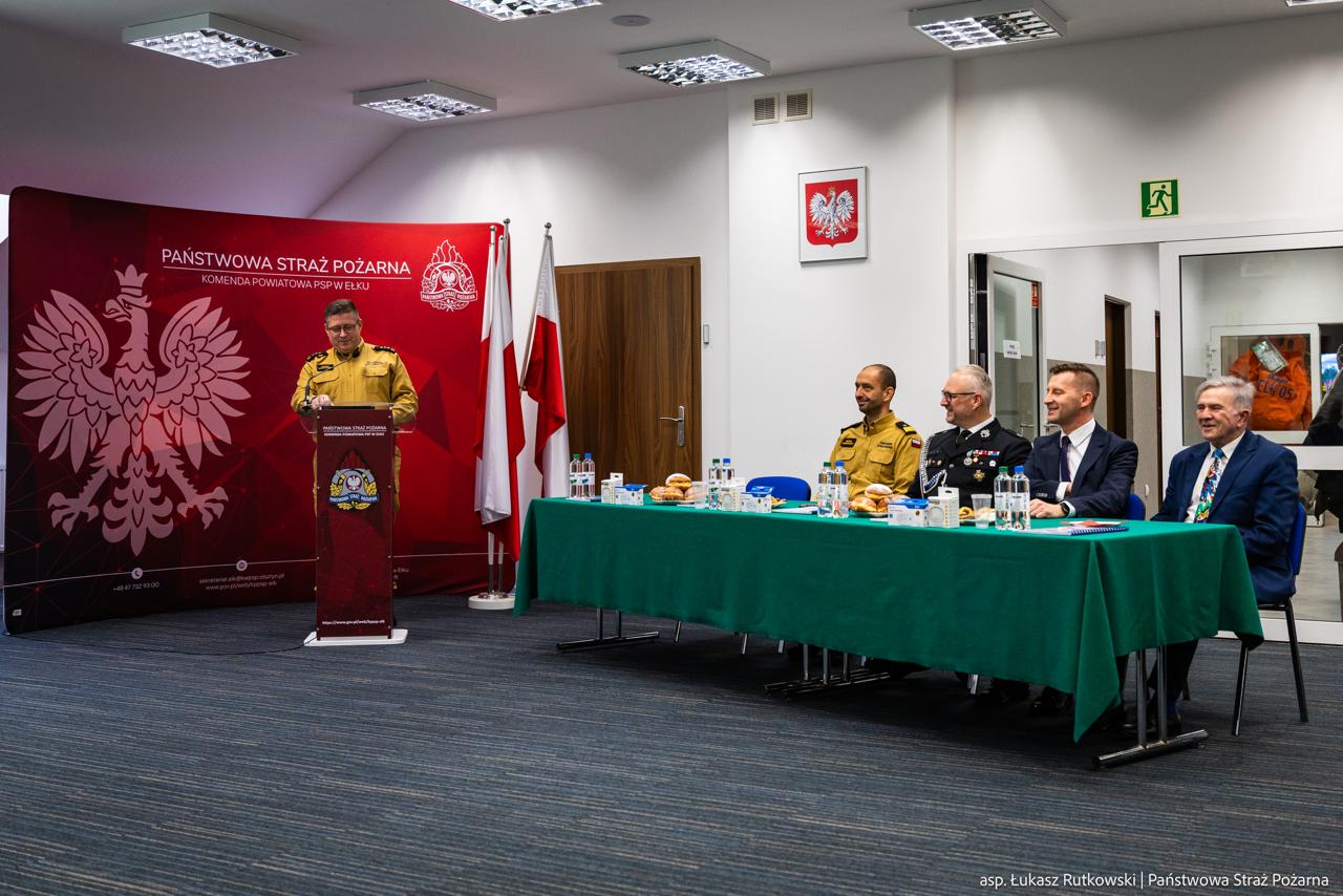 Dziś, 12 lutego 2026 r. w sali konferencyjnej Komendy Powiatowej PSP w Ełku odbyła się narada roczna podsumowująca działalność ochrony przeciwpożarowej w powiecie ełckim w 2025 r.