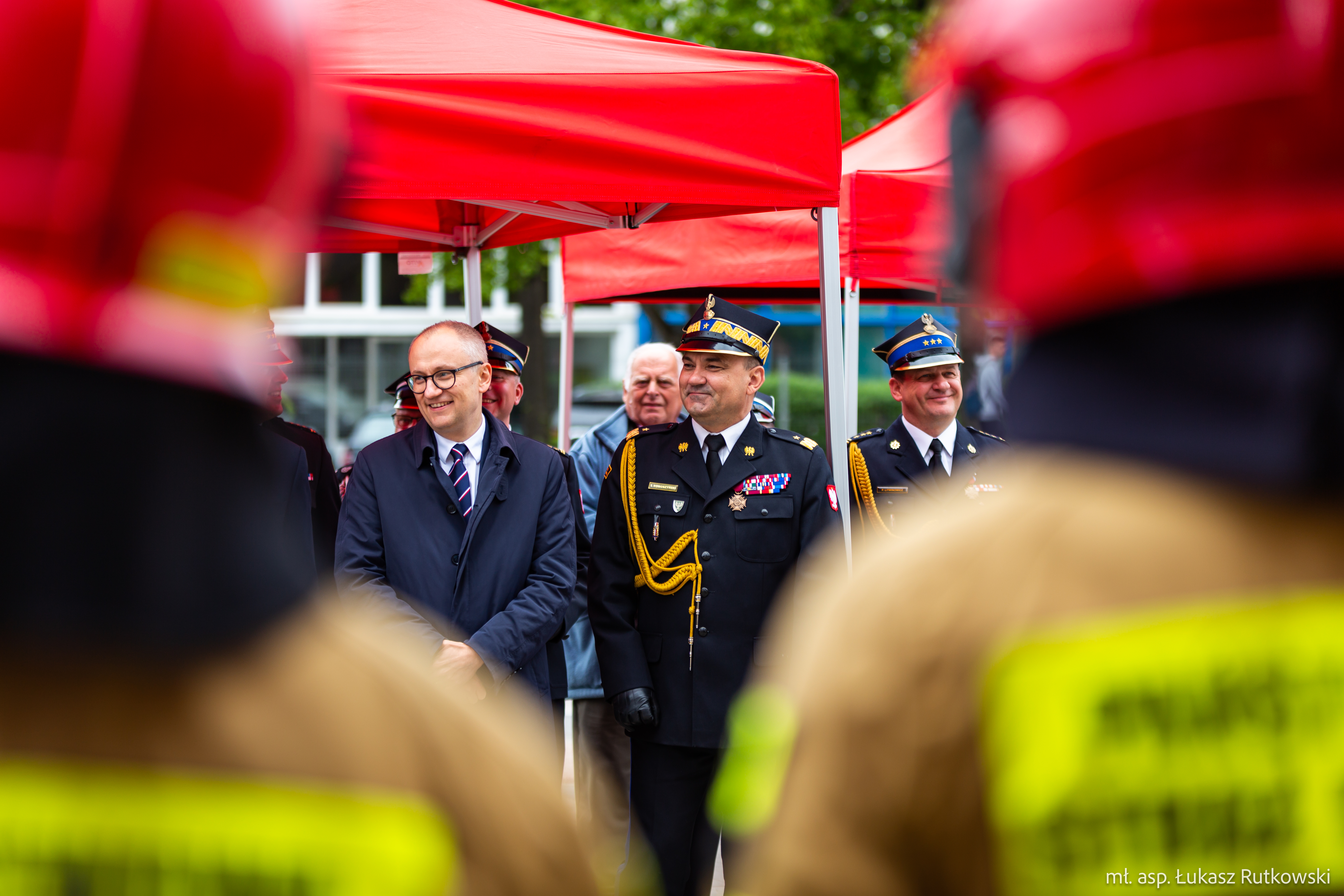 W uroczystości wzięli udział: Poseł na Sejm Rzeczpospolitej – Pan Jerzy Małecki, Podsekretarz Stanu MSWiA p. Błażej Poboży, Warmińsko-Mazurski Komendant Wojewódzki PSP – nadbryg. Tomasz Komoszyński, przedstawiciele władz samorządowych ze Starostą Powiatu Ełckiego – Panem Markiem Chojnowskim na czele, przedstawiciele służb mundurowych i instytucji współpracujących z ełckimi strażakami, kapelan strażaków ks. dr Jerzy Szorc. Obecni byli także emerytowani strażacy i druhowie z powiatu ełckiego.