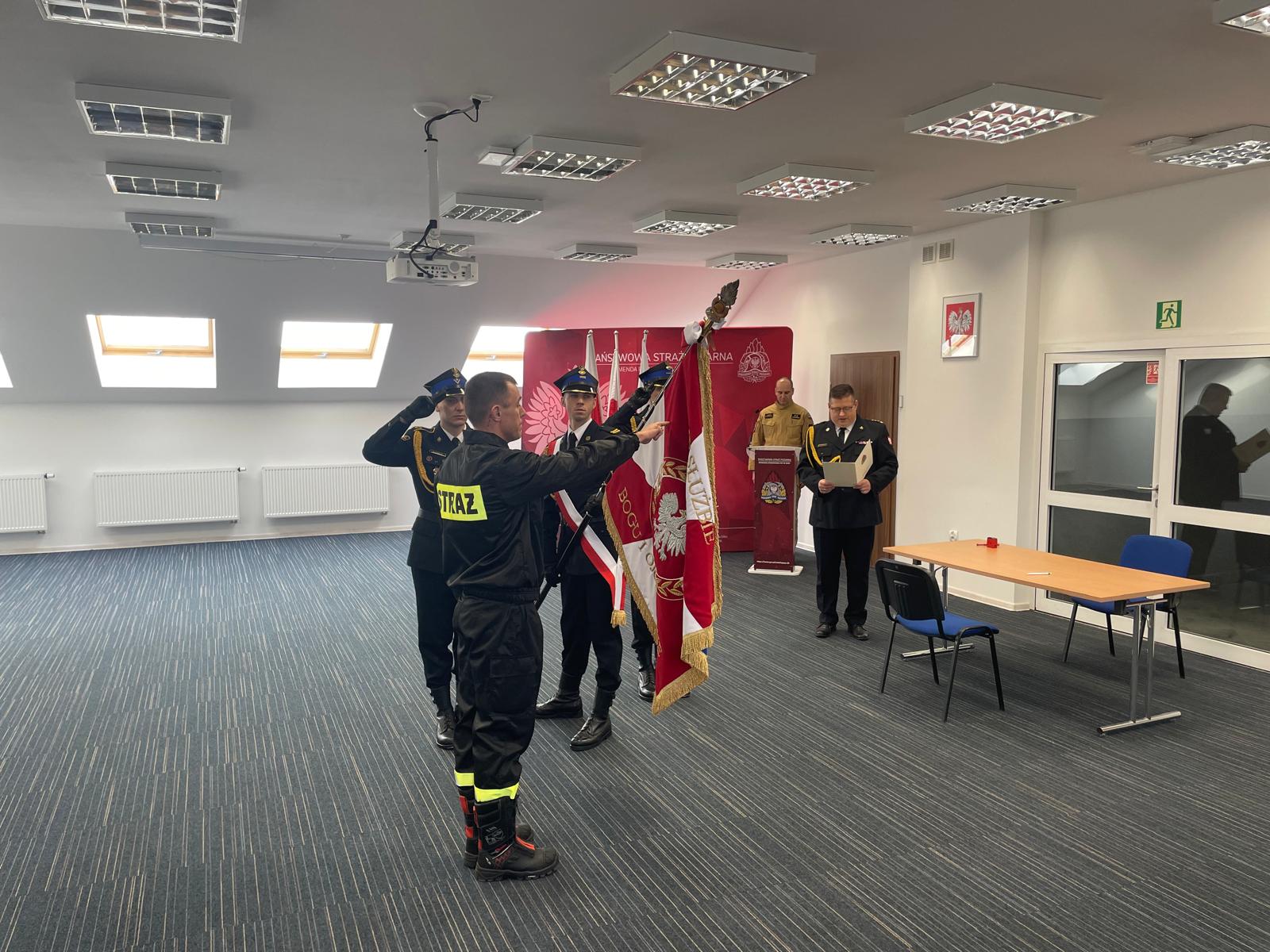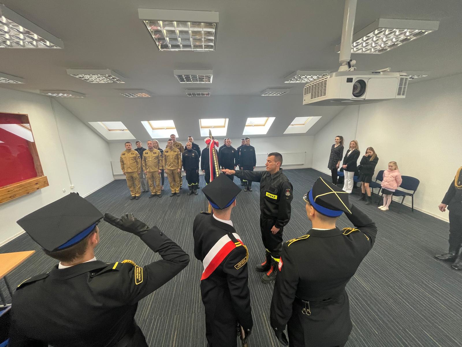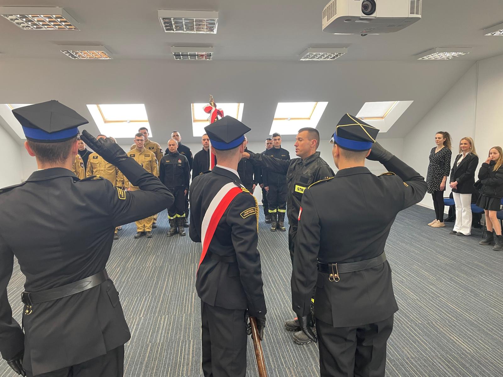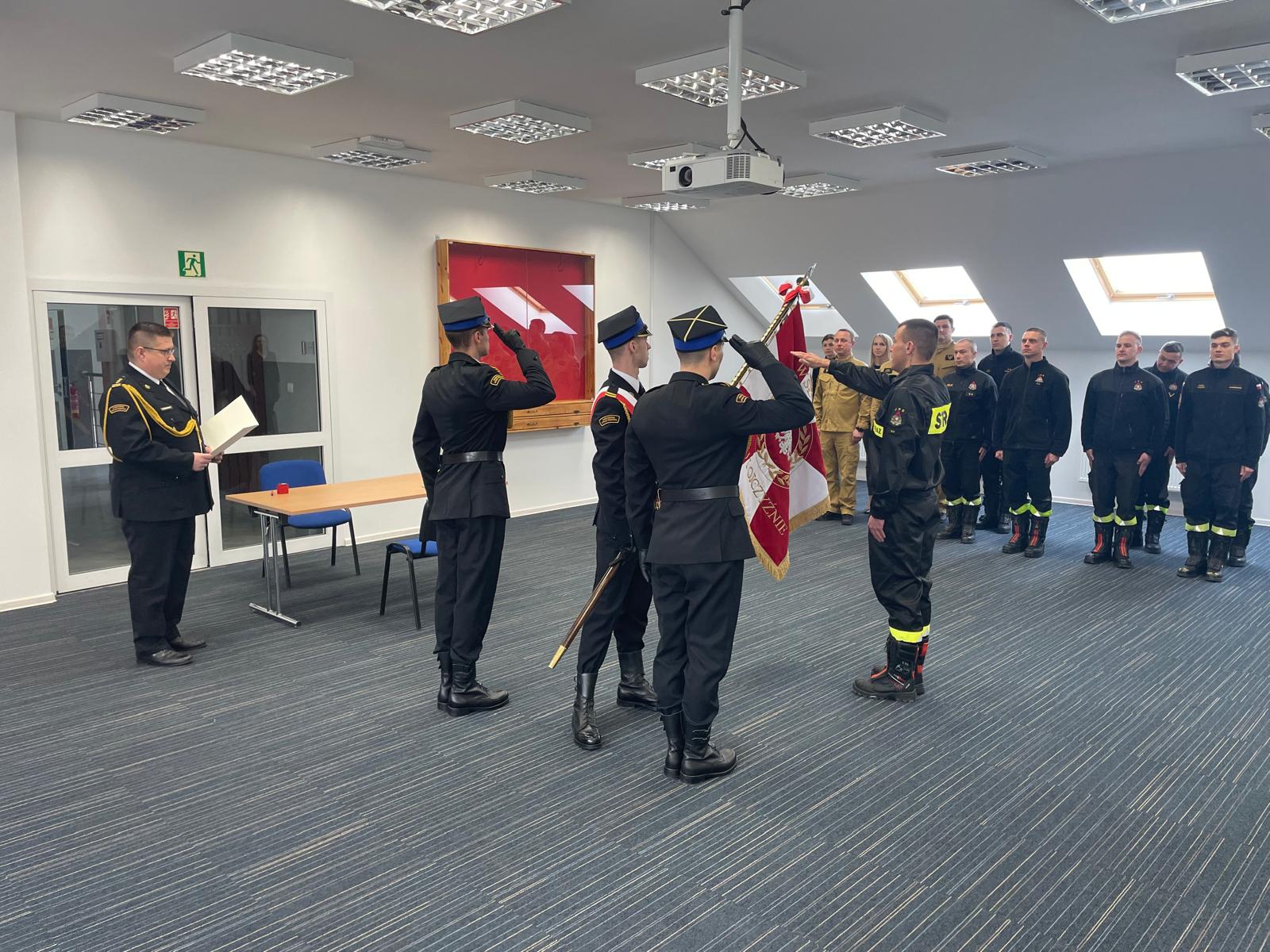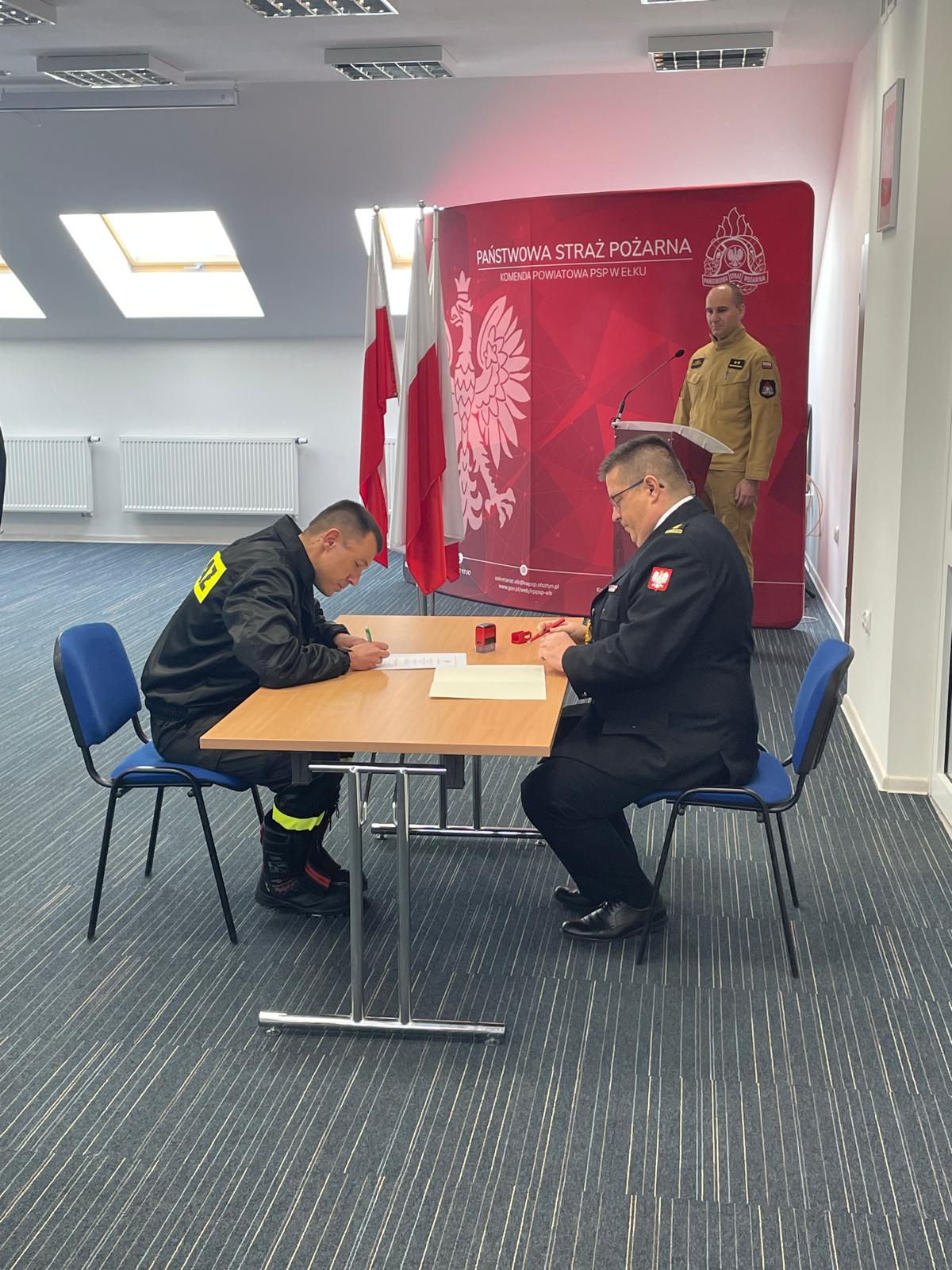 Uroczystą zbiórkę rozpoczął meldunek Dowódcy JRG w Ełku złożony Komendantowi Powiatowemu. Następnie po wprowadzeniu sztandaru Komendy - str. Grzegorz Szczepański z dumą wypowiedział słowa roty ślubowania. Kolejnym punktem uroczystej zbiórki było podpisanie aktu ślubowania oraz kilka pokrzepiających słów skierowanych od Komendanta Powiatowego PSP w Ełku st. bryg. Marka Markowskiego do ślubowanego oraz jego rodziny.