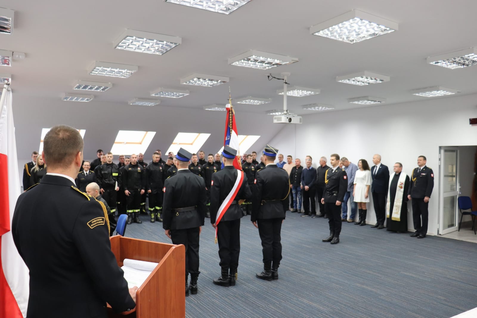 W piątek 23 grudnia 2022r. funkcjonariusze i pracownicy Komendy Powiatowej Państwowej Straży Pożarnej w Ełku zgromadzili się na strażackim spotkaniu opłatkowym połączonym ze ślubowaniem dwóch funkcjonariuszy, którzy w ostatnim czasie zasilili szeregi naszej Jednostki Ratowniczo-Gaśniczej. W spotkaniu wzięli udział również zaproszeni goście: Wiceprezydent Miasta Ełk Mirosław Hołubowicz, Kapelan ełckich strażaków - ks. dr Jerzy Szorc oraz emeryci.