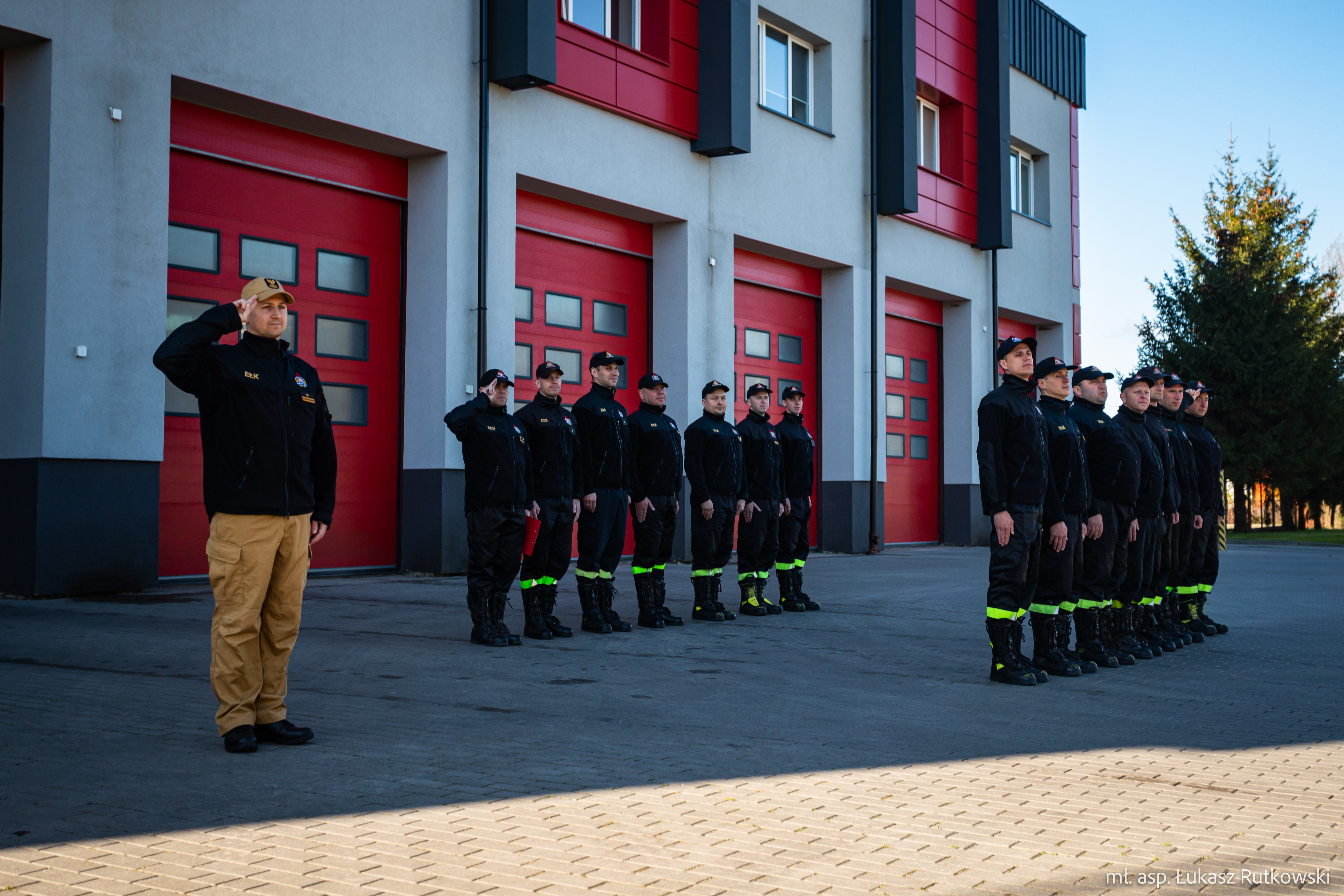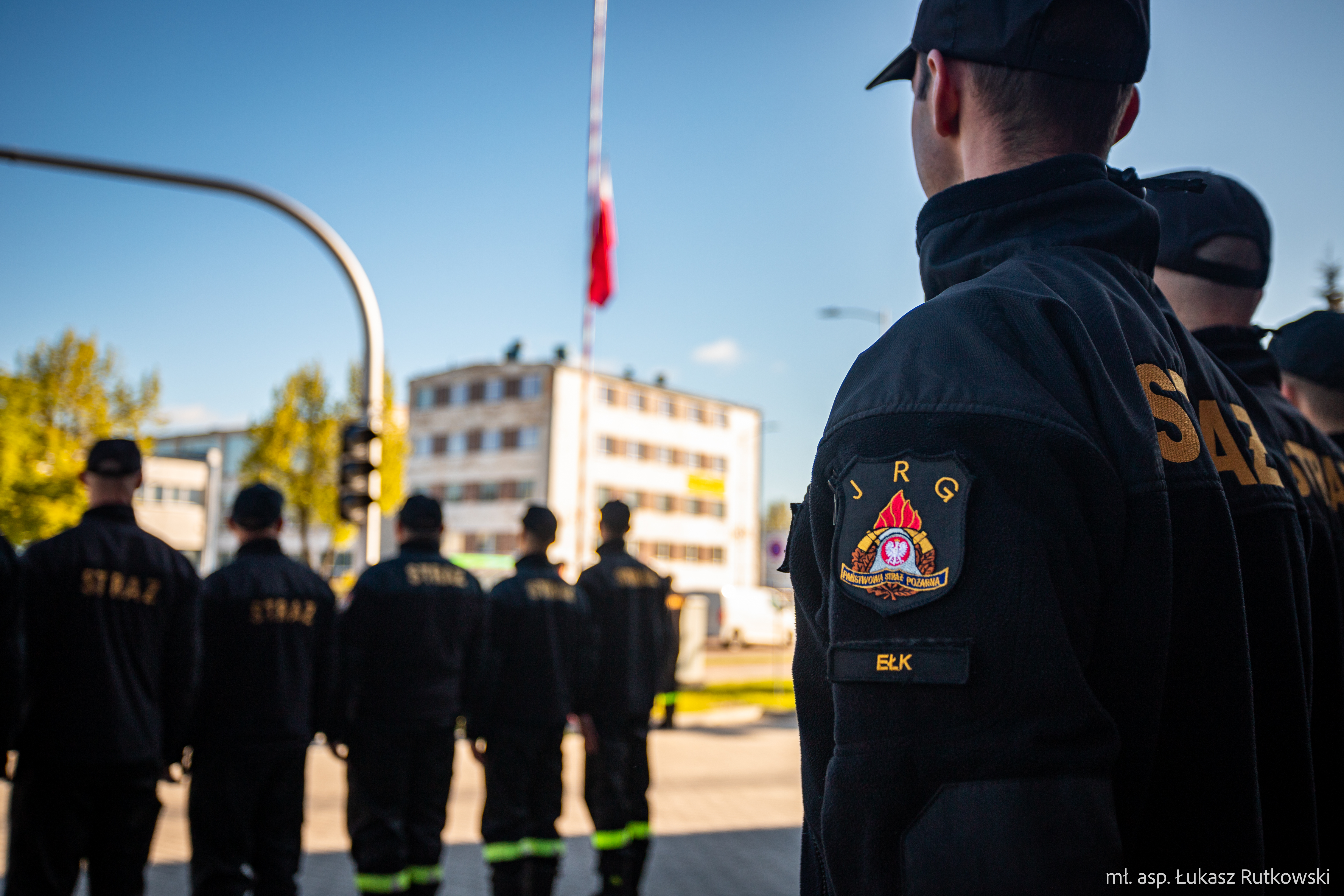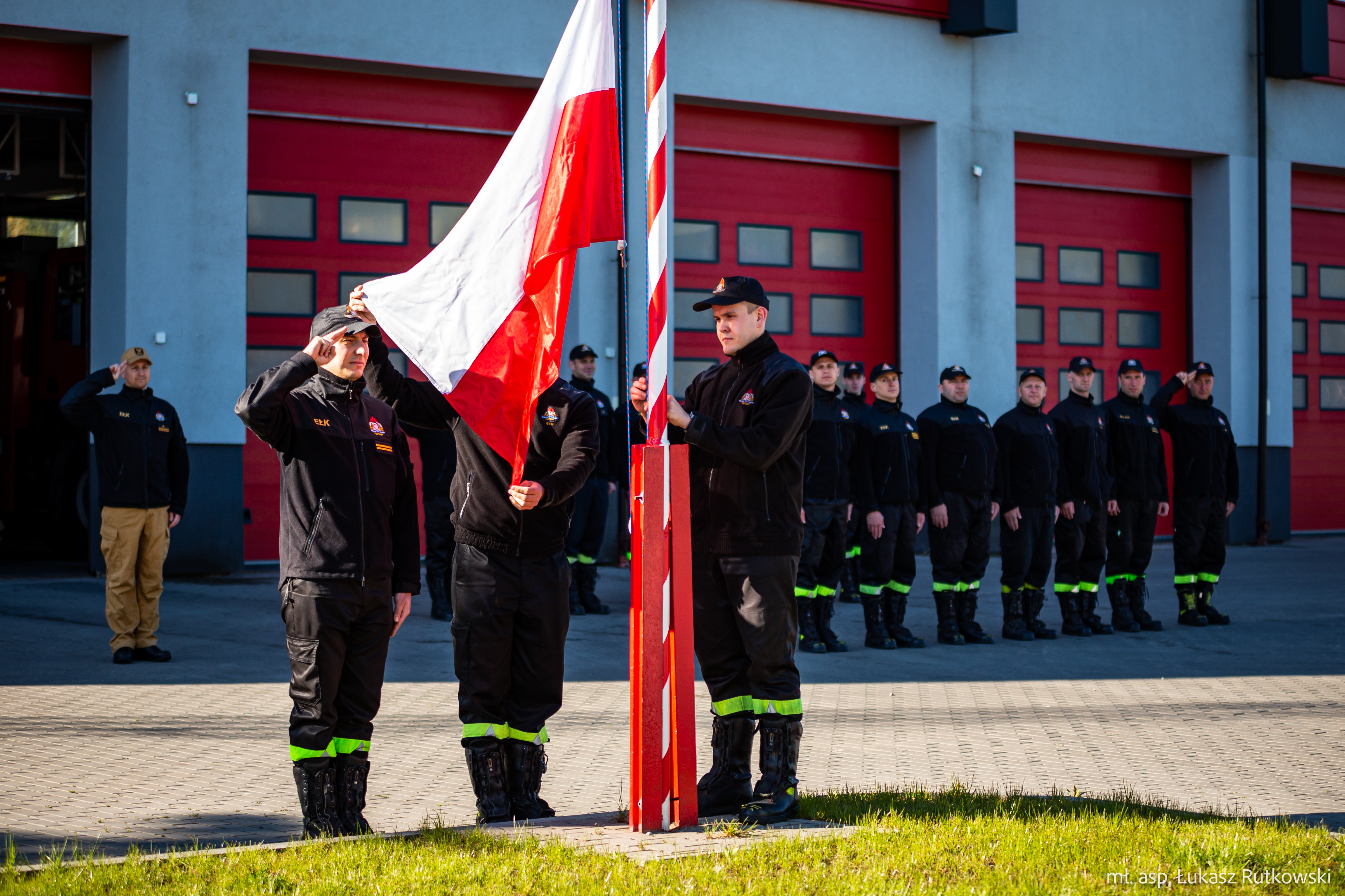 W celu uczczenia 232 rocznicy uchwalenia Konstytucji Trzeciego Maja podczas uroczystej zmiany służby w JRG PSP w Ełku dokonano podniesienia flagi państwowej na maszt oraz odsłuchano Hymnu Polski