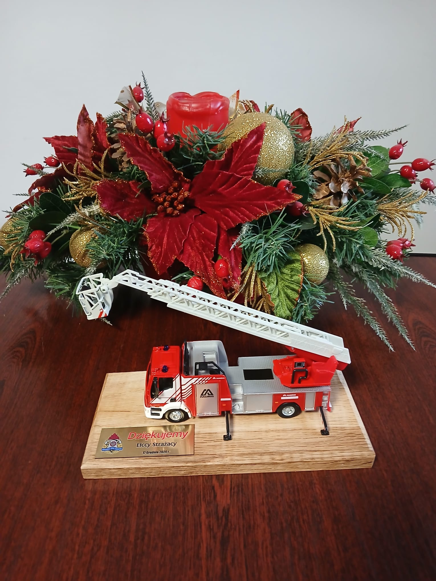 Nasza Komenda oficjalnie otrzymała samochód specjalny drabinę mechaniczną SCD42 o maksymalnym wysięgu 42 metrów marki Magirus na podwoziu Iveco Eurocargo. Jej bardzo istotną zaletą poza dłuższym niż poprzedniczki wysięgiem jest możliwość manewrowania tzw. „łamania” ostatniego przęsła co znacznie ułatwia np. docieranie do całej powierzchni dachów wielospadowych. Łączny koszt zakupu nowego sprzętu wyniósł niecałe 4 miliony złotych. W jego finansowaniu poza rządowymi środkami w ramach ustawy modernizacyjnej służb (3 450 000 zł) wzięła udział Komenda Główna PSP w kwocie 250 000 zł oraz samorząd miasta i powiatu ełckiego w kwocie blisko 300 000 zł. Komendant Powiatowy PSP w Ełku st. bryg. Marek Markowski w podziękowaniu za pomoc wręczył nieco mniejsze wersje naszej drabiny w formie pamiątkowych statuetek.