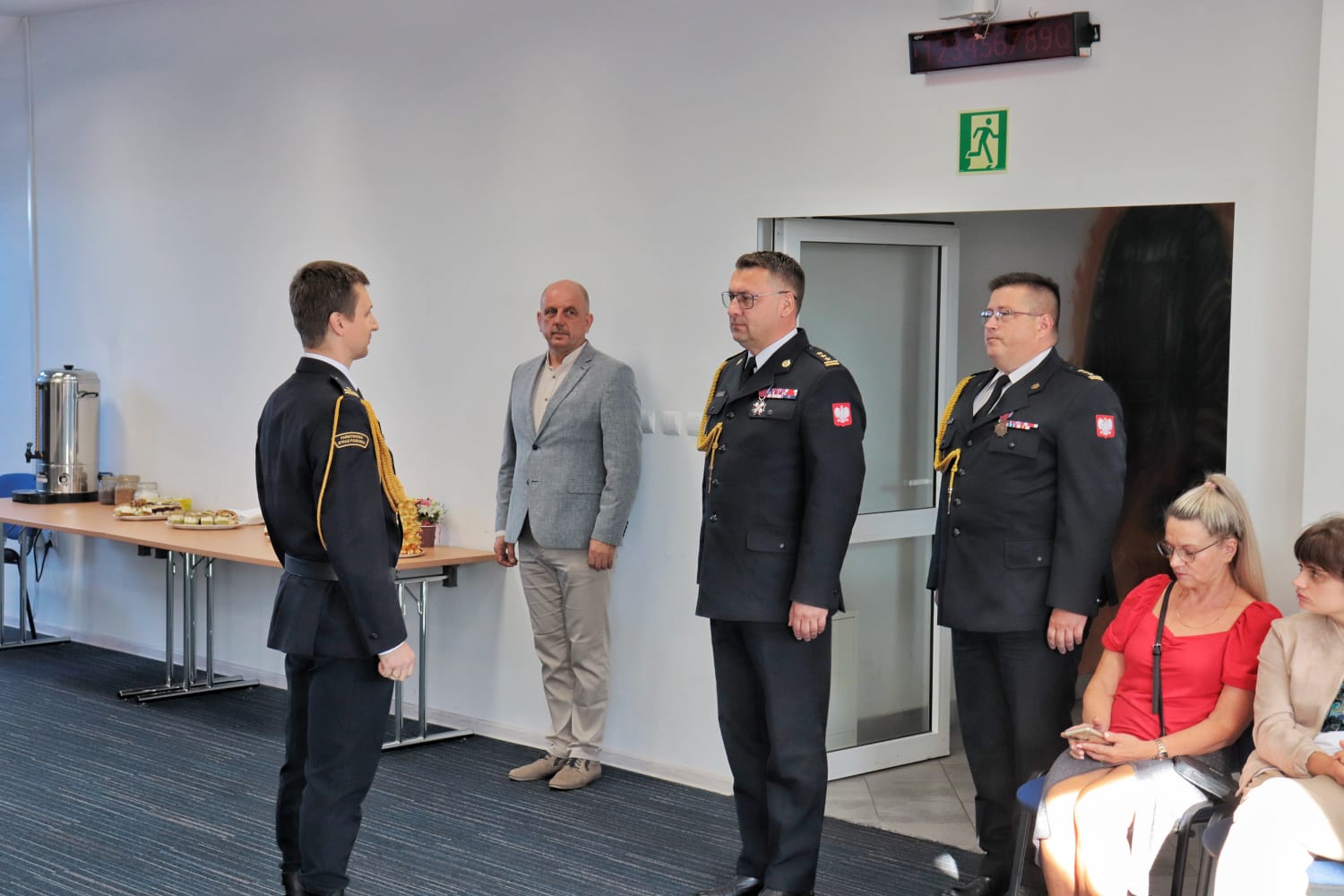 W dniu 15 września 2023 r. na terenie Komendy Powiatowej Państwowej Straży Pożarnej w Ełku odbyło się ślubowanie przyjętych do służby strażaków - str. Mateusza Baranowskiego, str. Mateusza Chrzanowskiego i str. Adrianny Dobrowolskiej.