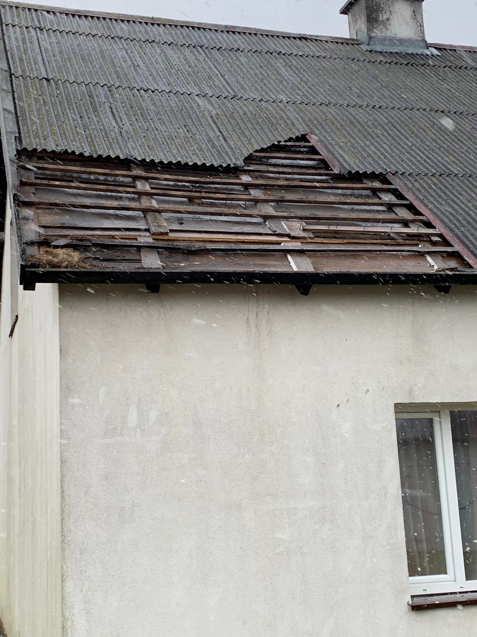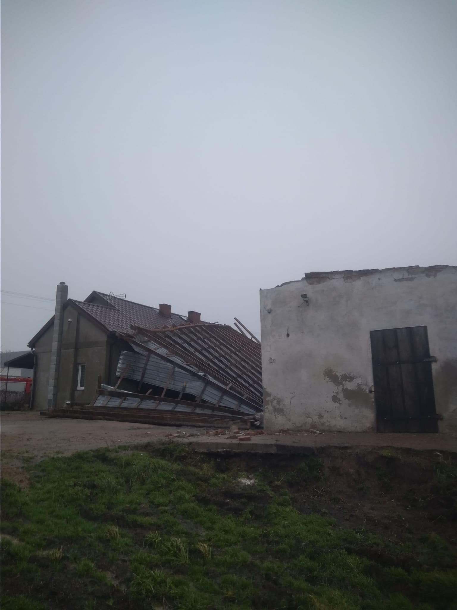 - 5 uszkodzonych budynków (3 mieszkalne, 1 gospodarczy, 1 budynek zespołu szkół),