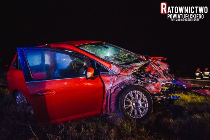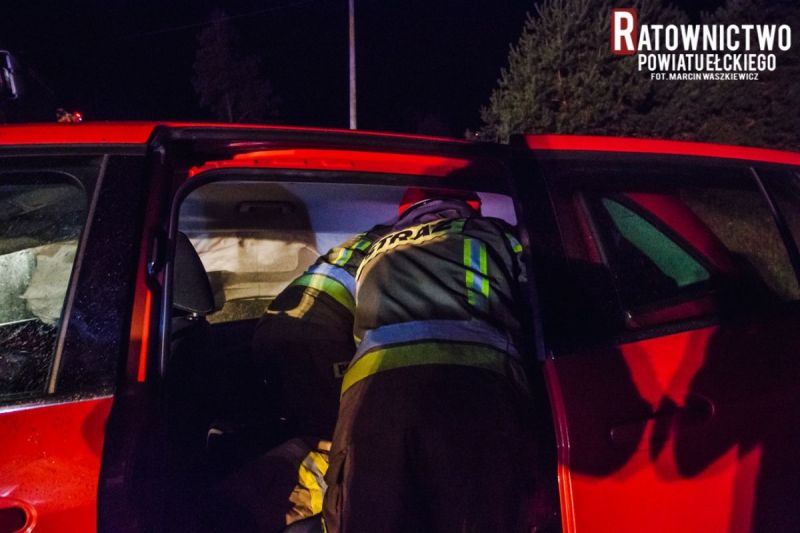 Na miejsce wypadku pierwsi dojechali strażacy z OSP w Prostkach. Zastali samochód osobowy Ford z całkowicie zniszczonym przodem stojący kilka metrów za przejazdem kolejowym. W aucie nie znaleziono żadnej osoby poszkodowanej. Po dojeździe strażaków z KP PSP w Ełku i funkcjonariuszy policji przeszukano teren wokół auta w promieniu około 200 metrów, osób poszkodowanych nie znaleziono. Pociągiem relacji Ełk – Białystok podróżowało kilkunastu pasażerów, którzy nie odnieśli żadnych obrażeń. Autobusem zastępczym zostali przewiezieni do Ełku. Z relacji maszynisty i kierownika pociągu zderzenie z autem było prawie nie odczuwalne. Wyjaśnienie okoliczności tego niebezpiecznego zdarzenia prowadza funkcjonariusze ełckiej Komendy Powiatowej Policji. Działania zakończono po około 80 minutach.