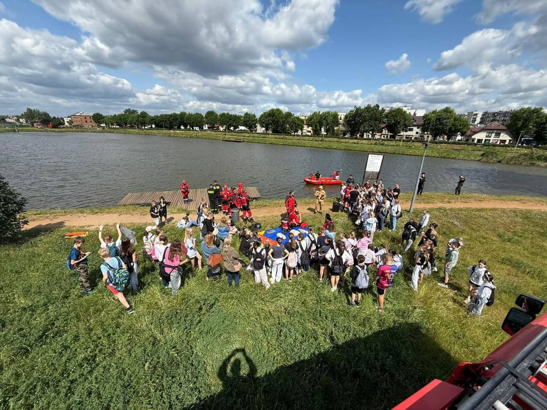 24 czerwca o godz. 10:30 w ramach akcji "BEZPIECZNE WAKACJE 2025" na akwenie wodnym na Zarzeczu w Garwolinie odbył się pokaz edukacyjno-informacyjny, w którym udział wzięli uczniowie szkół podstawowych z terenu miasta Garwolina oraz klas mundurowych Liceum Ogólnokształcącego w Żelechowie. Strażacy z Komendy Powiatowej PSP w Garwolinie omówili zagrożenia związane z wypoczynkiem nad wodą, a następnie zaprezentowali techniki ratowania osób tonących.