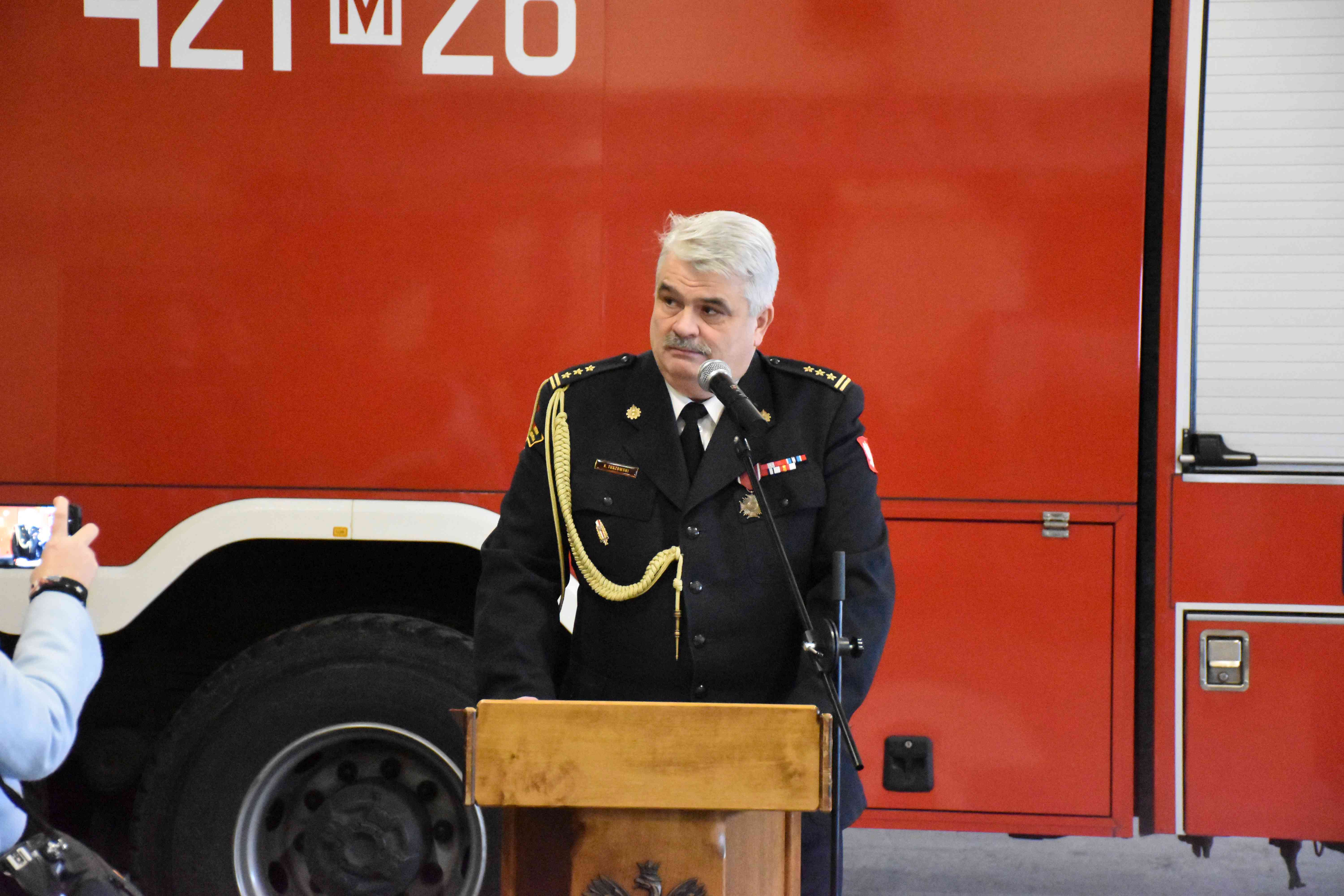 Również Zastępca Mazowieckiego Komendanta Wojewódzkiego PSP podziękował odchodzącemu na zaopatrzenie emerytalne Komendantowi za wieloletnią współpracę i wzorowe wykonywanie obowiązków służbowych.