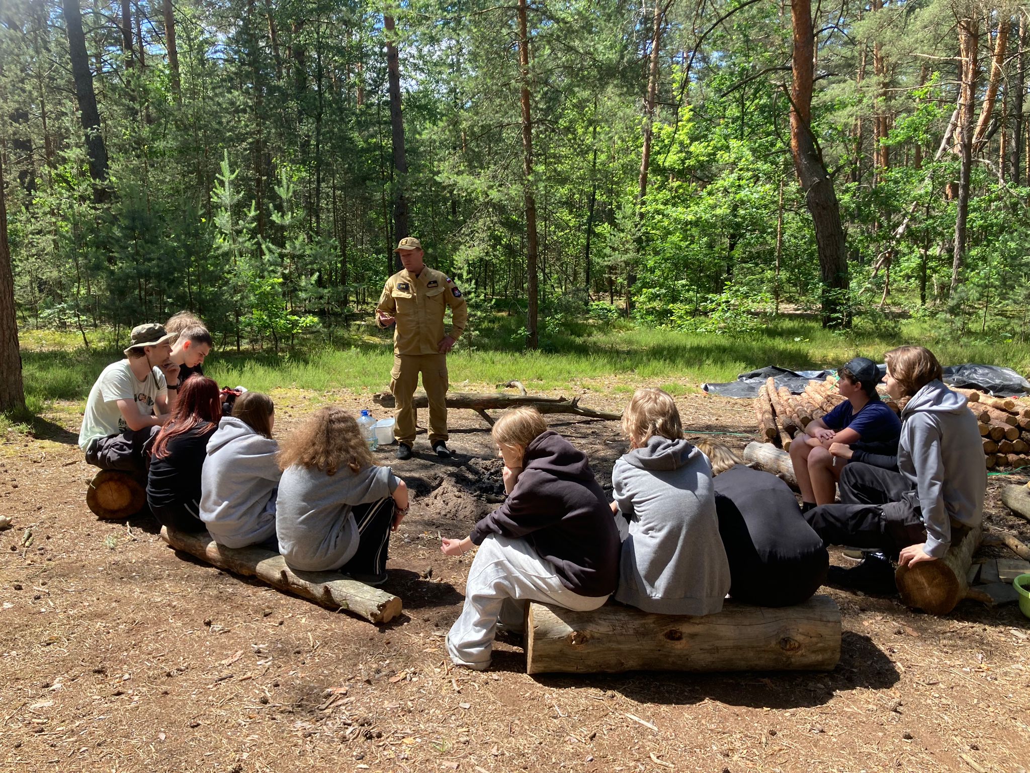 Podczas spotkania z uczestnikami obozu omówione zostały zasady bezpieczeństwa podczas wypoczynku w lesie, zasady postępowania oraz wymiany informacji i utrzymywania łączności w przypadku zagrożenia życia i zdrowia, a także w przypadku możliwości występowania niekorzystnych zjawisk meteorologicznych. Przeprowadzono również sprawdzenie łączności.