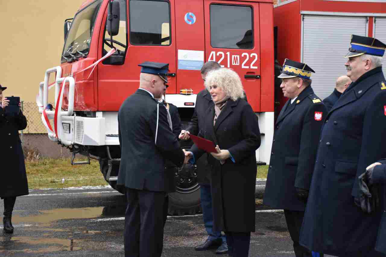 Akt przekazania samochodu pożarniczego oraz kluczyki Prezesowi OSP Wola Władysławowska wręczyli: