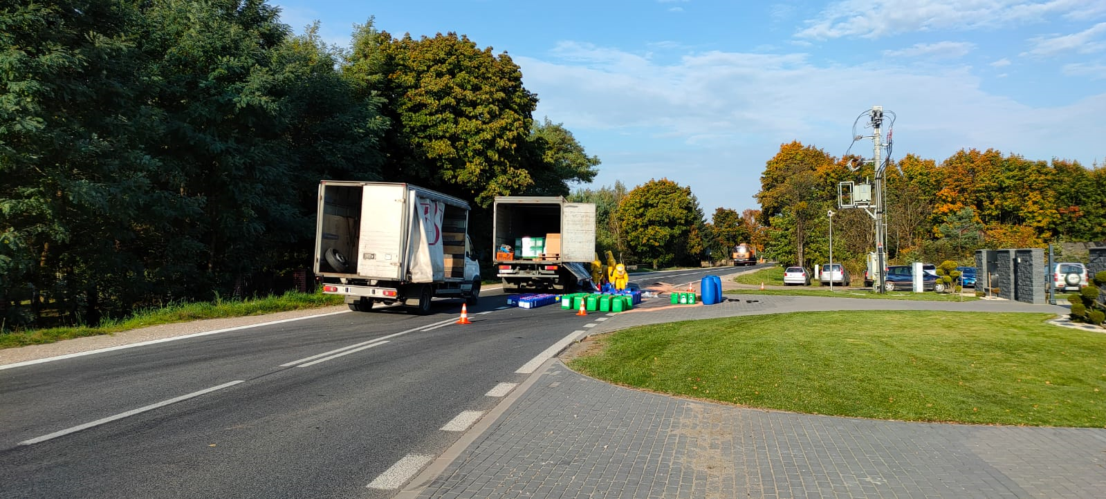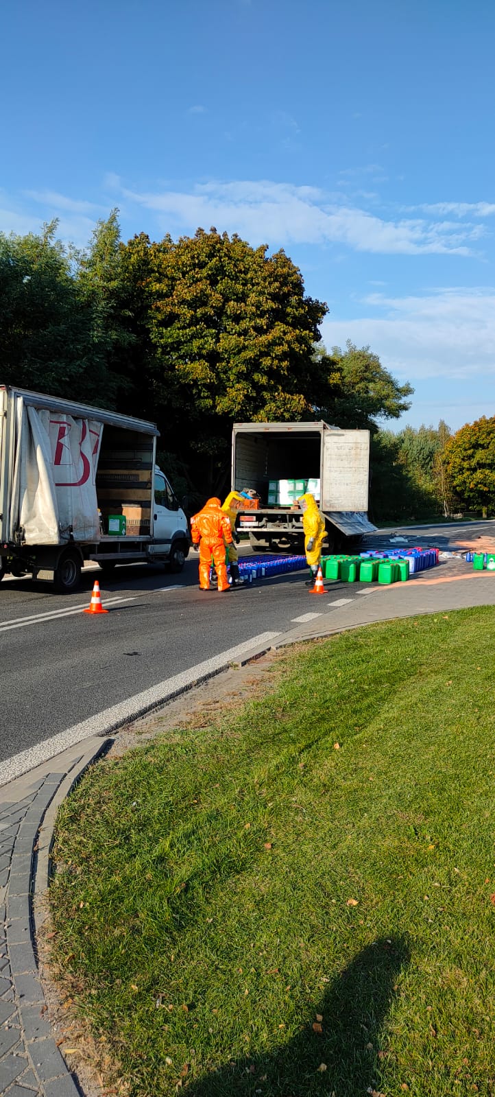 Przed godziną 6 do Stanowiska Kierowania PSP w Garwolinie wpłynęła informacja o zdarzeniu drogowym w miejscowości Tyrzyn, gdzie samochód ciężarowy przewożący substancje niebezpieczne najechał na tył naczepy samochodu ciężarowego jadącego przed nim. W wyniku zdarzenia kierowcy nie odnieśli żadnych obrażeń, natomiast rozszczelnieniu uległa część zbiorników z substancjami niebezpiecznymi. Działania zastępów straży pożarnej polegały na zabezpieczeniu miejsca zdarzenia, ograniczaniu rozlewiska za pomocą sorbentu oraz wyznaczeniu strefy zagrożenia. Ruch na drodze wojewódzkiej nr 801 był całkowicie wstrzymany. Po przybyciu Specjalistycznej Grupy Ratownictwa Chemiczno–Ekologicznego „WARSZAWA 6” ratownicy zlokalizowali i zabezpieczyli uszkodzone pojemniki, a resztę przeładowali na zorganizowany przez przewoźnika zastępczy środek transportu. Następnie przy użyciu sorbentu zebrano rozlewisko cieczy z drogi. W działaniach trwających ponad pięć godzin uczestniczyło dziesięć zastępów PSP i OSP Maciejowice.