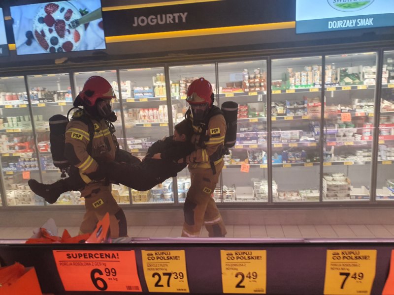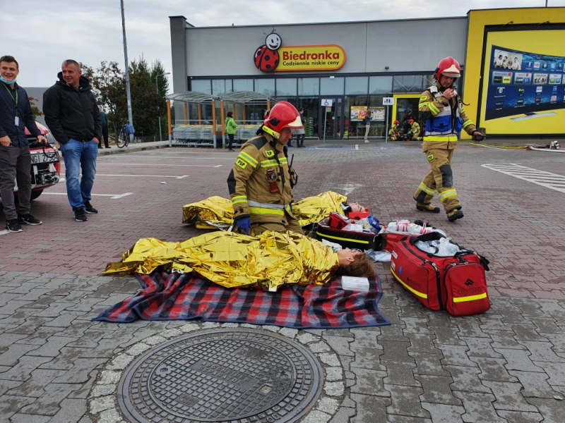 W czwartek, 16 września br. około godz. 9.30 odbyły się ćwiczenia manewrowe służb ratowniczych na obiekcie sklepu Biedronki w Giżycku przy ul. Jagiełły. Założenie do ćwiczeń zakładało powstanie pożaru w hali magazynowej, próba gaszenia pożaru przez pracowników nie przyniosła rezultatu, ogień rozprzestrzeniał się intensywnie powodując bardzo duże zadymienie. Ponadto po przeprowadzonej ewakuacji okazało się, że brakuje 8 osób.