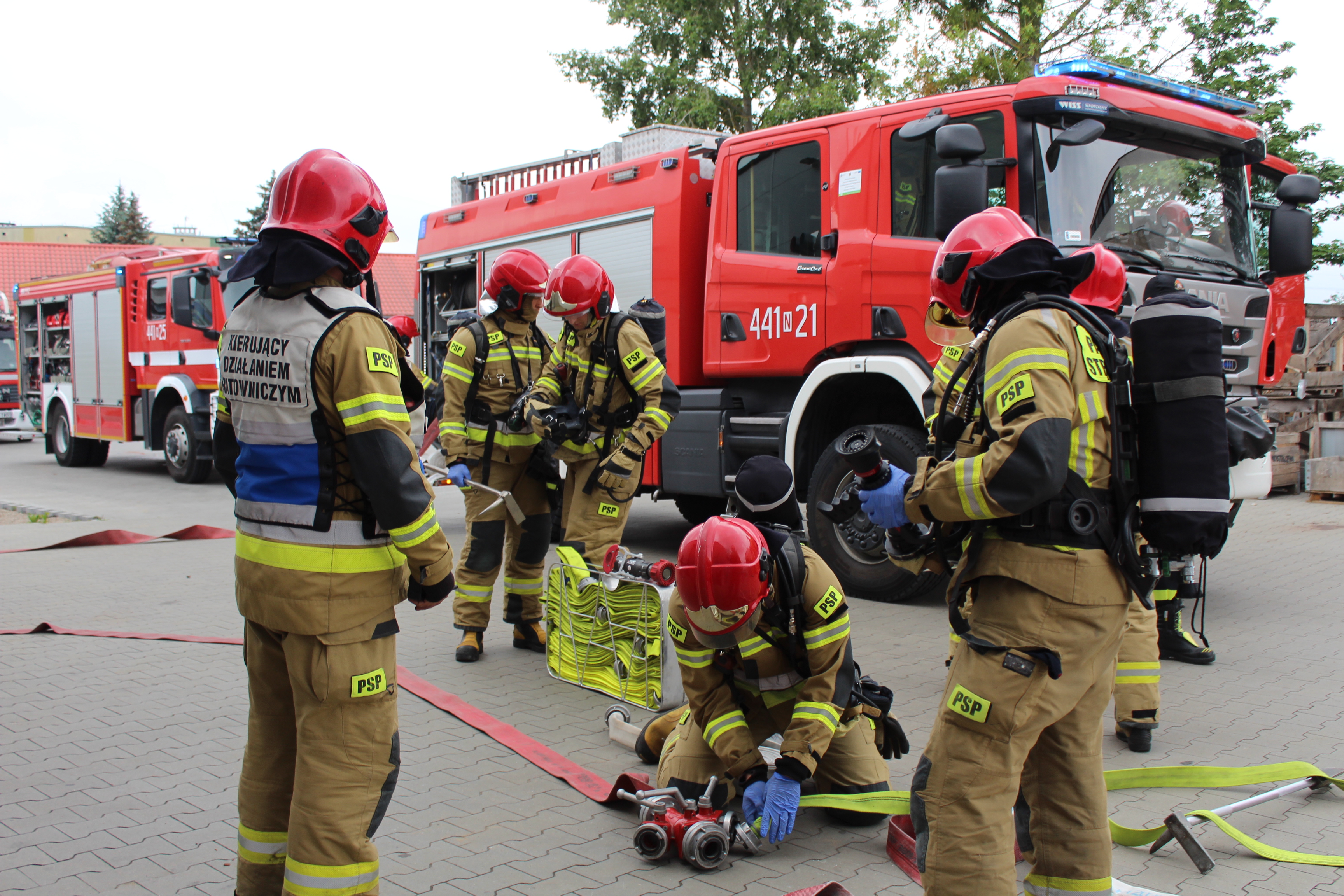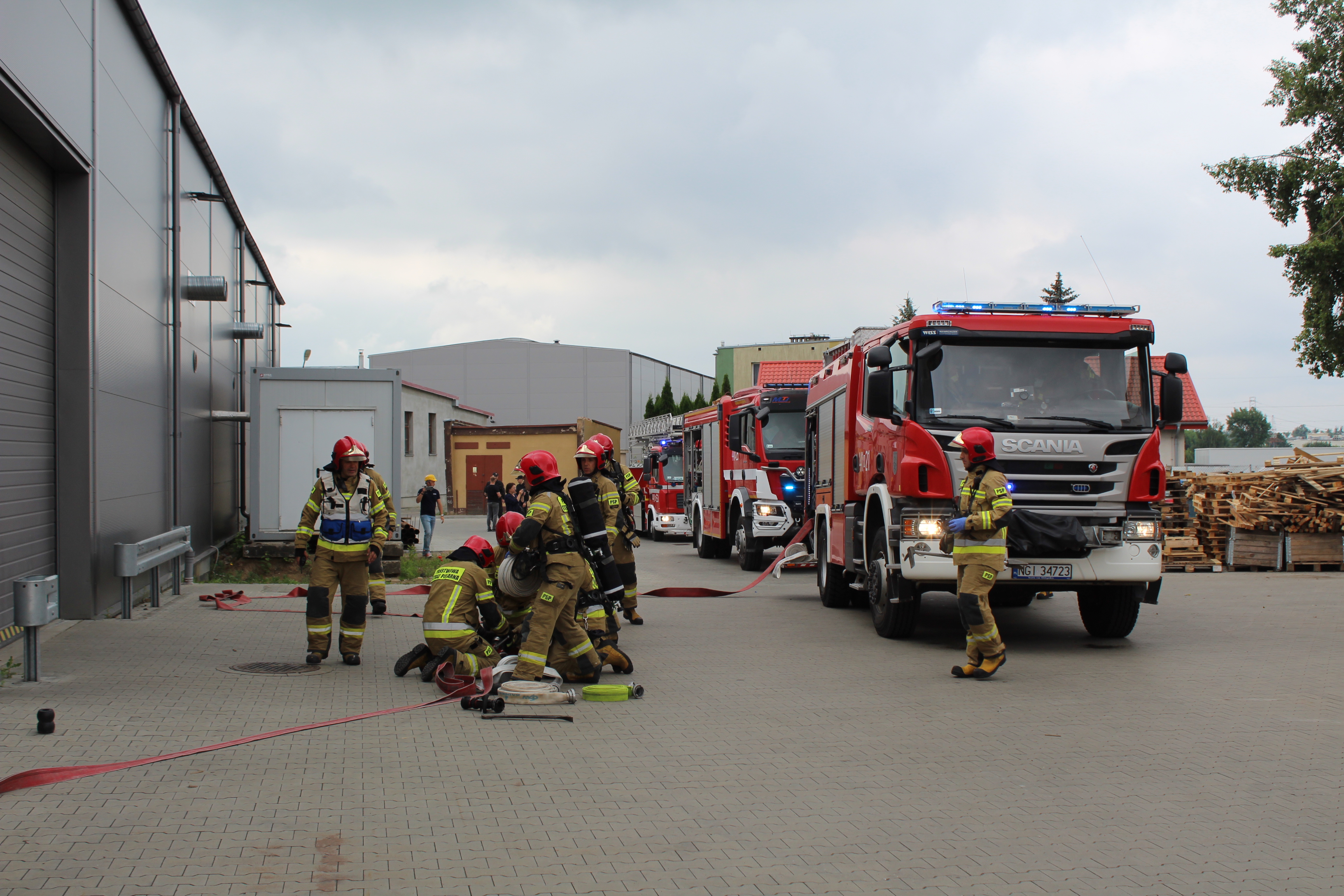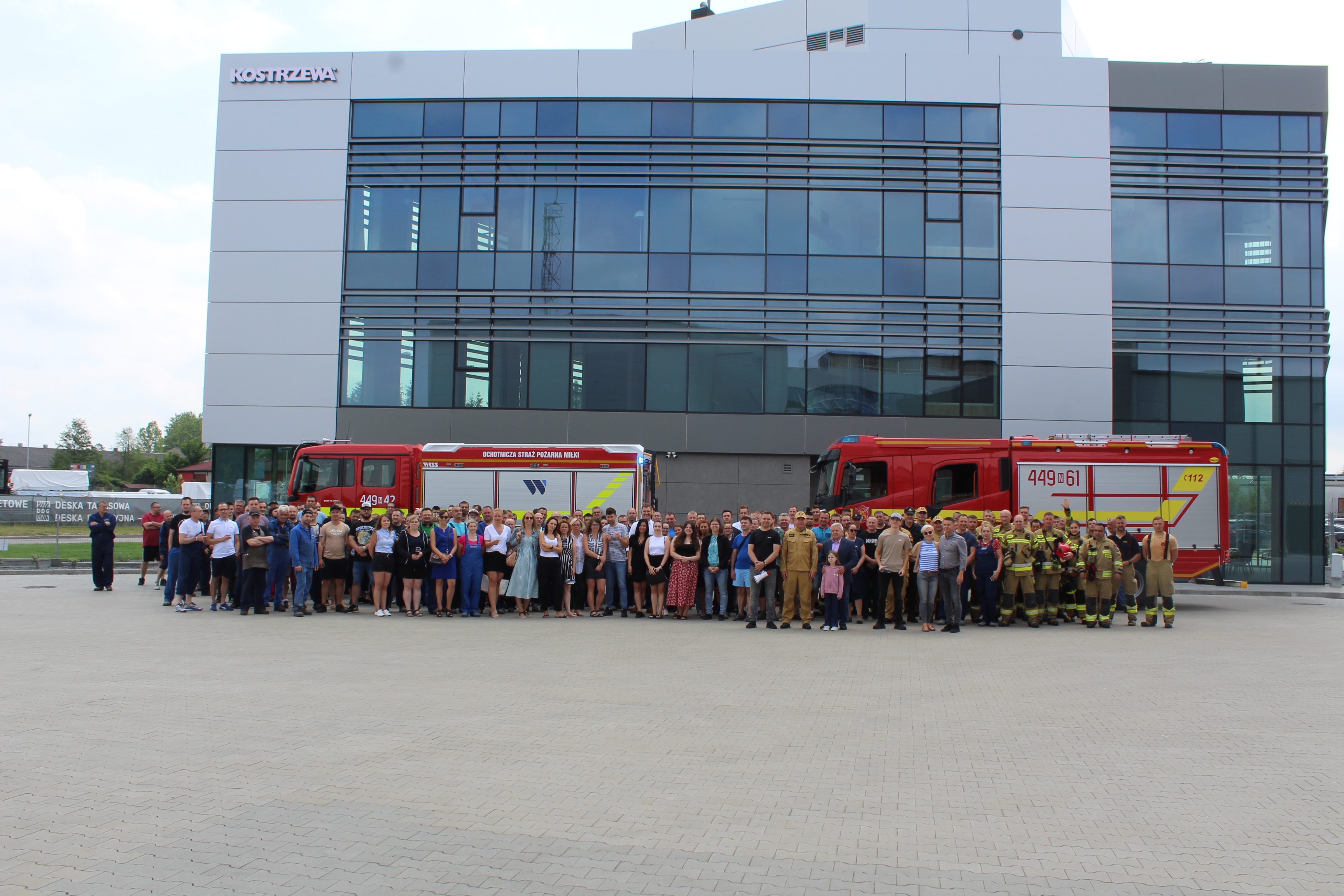 W dniu 22.06.2023 roku o godzinie 10:00 do Stanowiska Kierowania Komendanta Powiatowego PSP w Giżycku wpłynęła informacja o wybuchu i pożarze w hali produkcyjnej P.P.H. KOSTRZEWA Sp. j. Służby ratownicze powiadomiło kierownictwo zakładu, które podczas ewakuacji stwierdziło brak 5 pracowników. Zgłoszenie zagrożenia było sygnałem do rozpoczęcia ćwiczeń, w których uczestniczyli strażacy KP PSP w Giżycku, Jednostek Ochotniczych i Wojskowej Straży Pożarnej, na miejscu byli również funkcjonariusze Policji i Straży Miejskiej.