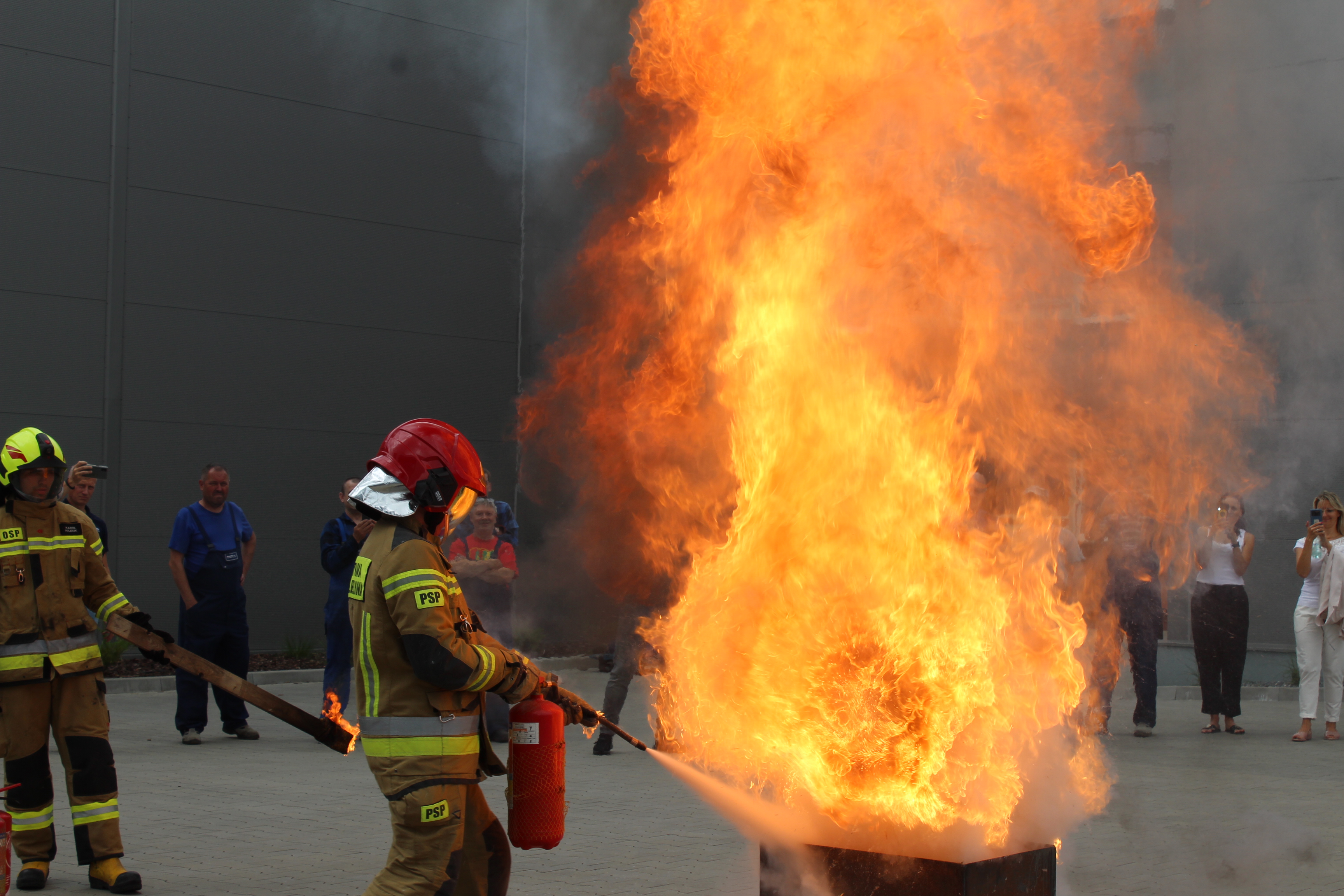 Po realizacji założenia funkcjonariusze giżyckiej Komendy przygotowali prelekcję dla pracowników zakładu na temat podstawowych zasad bezpieczeństwa w przypadku wystąpienia zagrożenia pożarowego oraz pokaz użycia podręcznego sprzętu gaśniczego.