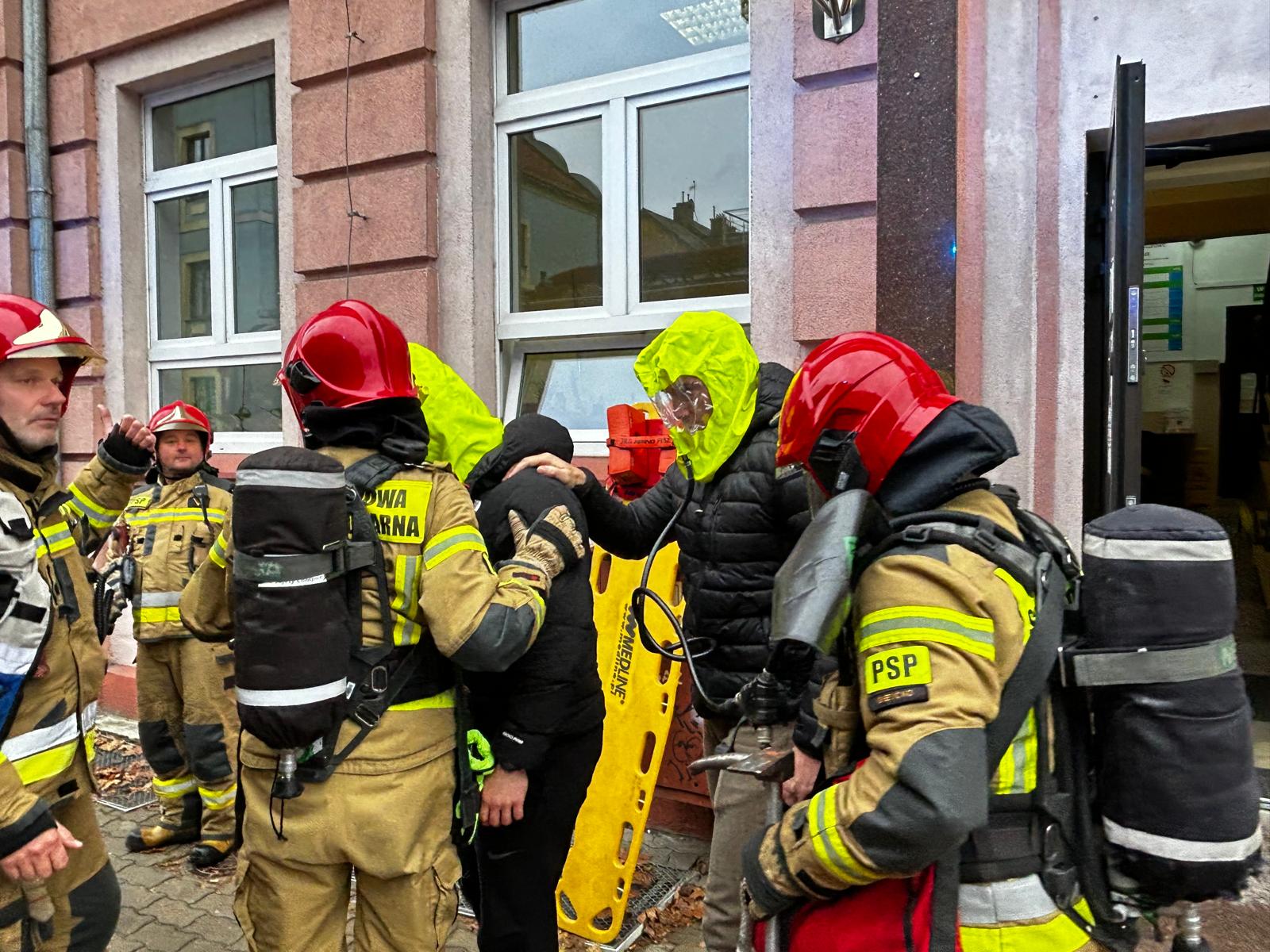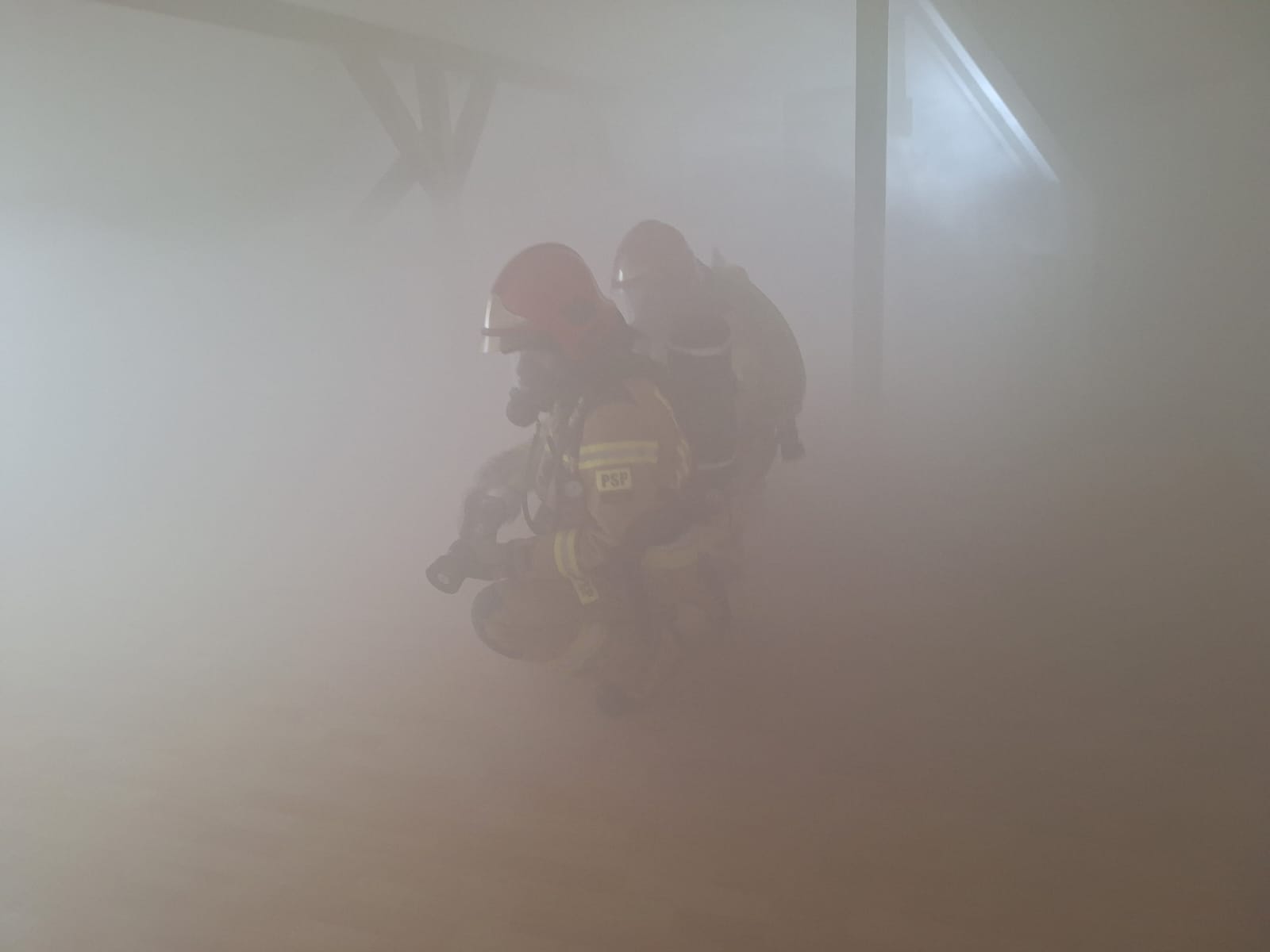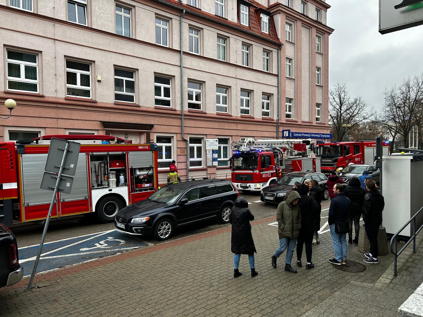W ramach ćwiczeń strażacy przeprowadzili akcję gaśniczą, a jednocześnie koordynowali ewakuację pracowników oraz interesantów.