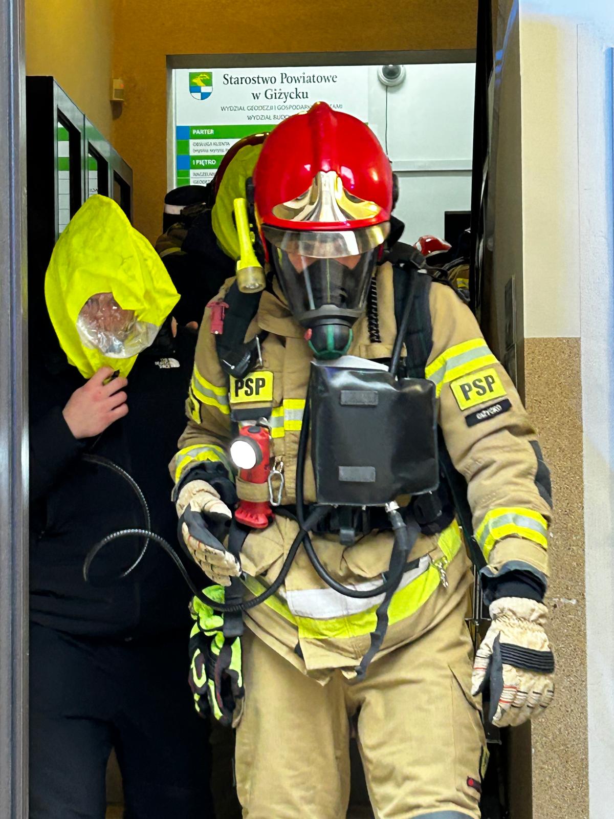Ćwiczenia strażaków w giżyckim Starostwie Powiatowym: skuteczna ewakuacja w praktyce