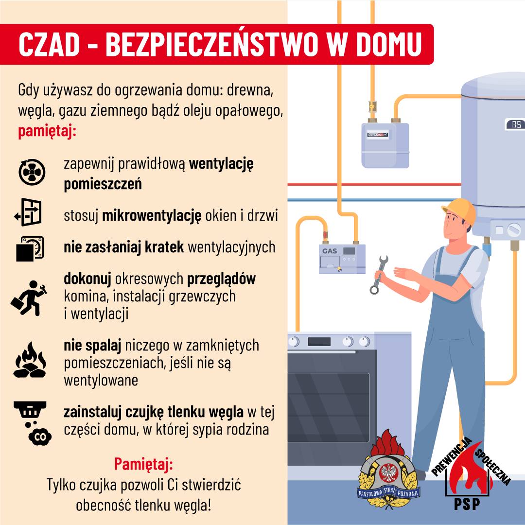 Rozpoczął się sezon grzewczy, jak każdego roku w naszym kraju, w okresie jesienno-zimowym w mieszkaniach i domach jednorodzinnych wzrasta ryzyko powstania pożarów. Najczęściej dochodzi do nich w wyniku wad lub niewłaściwej eksploatacji urządzeń grzewczych. W tym samym okresie odnotowywany jest także wzrost liczby zatruć tlenkiem węgla, zwanym "cichym zabójcą", gdyż jest niewidoczny oraz nie ma smaku, ani zapachu.