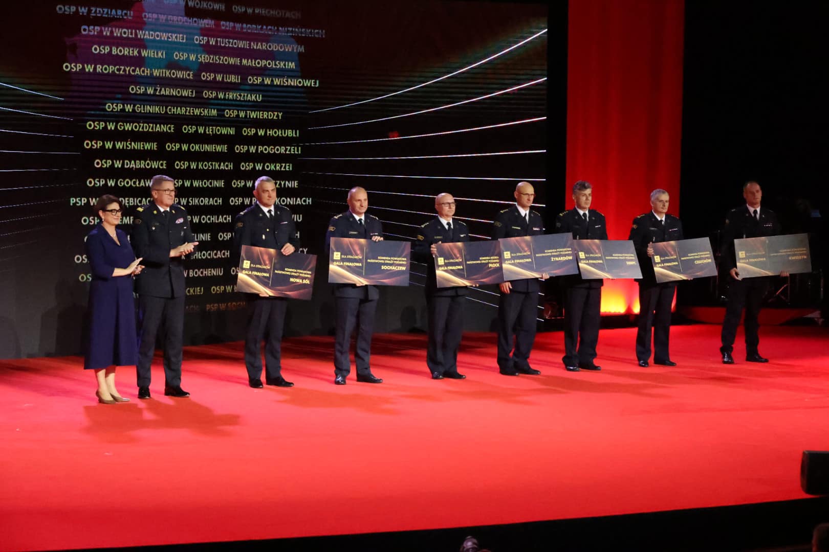 Promesy na zakup niezbędnego wyposażenia dla jednostek OSP wręczał prezes grupy Orlen pan Daniel Obajtek. Jednostkom Panstwowej Strazy Pożarnej dotacje wręczył nadbryg. Krzysztof Hejduk zastępca komendanta głównego PSP.