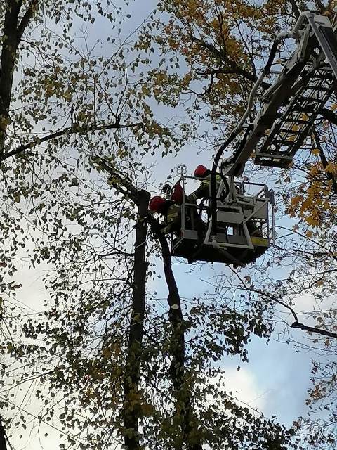 Pierwsze informacje o powalonych i nadłamanych drzewach zaczęły spływać do Stanowiska Kierowania Komendanta Powiatowego Państwowej Straży Pożarnej w Giżycku już po godzinie 15 w dniu 21.10.2021 r. Interwencje dotyczyły usunięcia powalonych drzew i złamanych gałęzi, które w kilku przypadkach opierały się o linie energetyczne. O szczęściu mogą mówić pasażerowie samochodu osobowego, na który spadł konar drzewa w miejscowości Bystry. Pomimo znacznego uszkodzenia pojazdu osoby znajdujące się wewnątrz nie odniosły obrażeń.