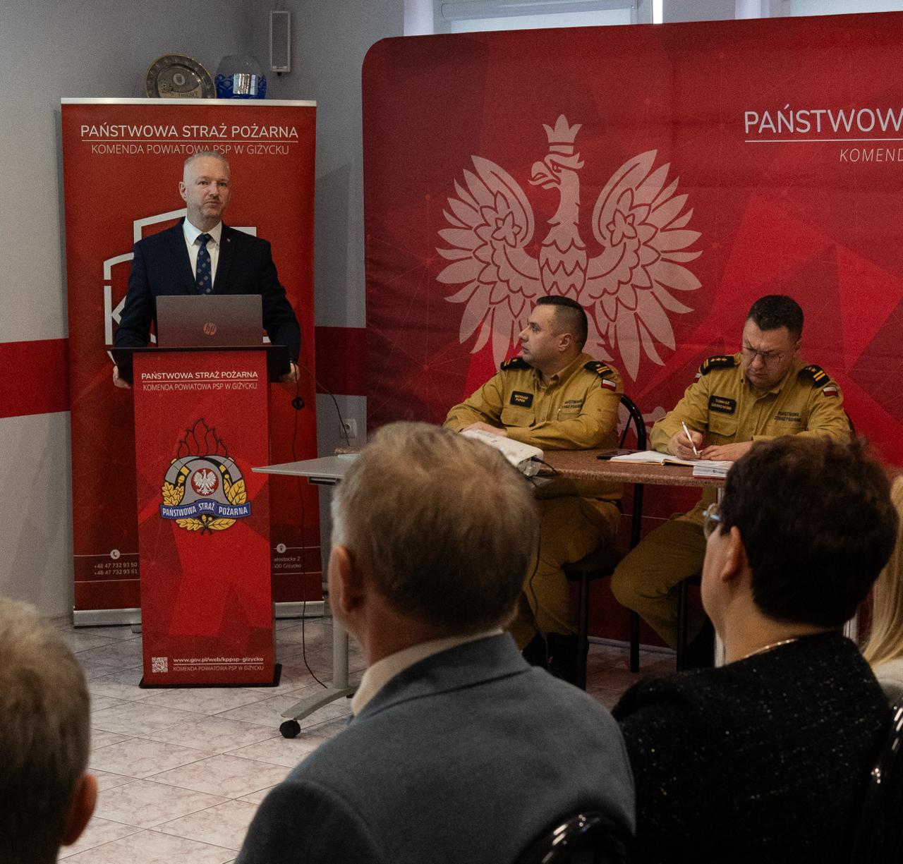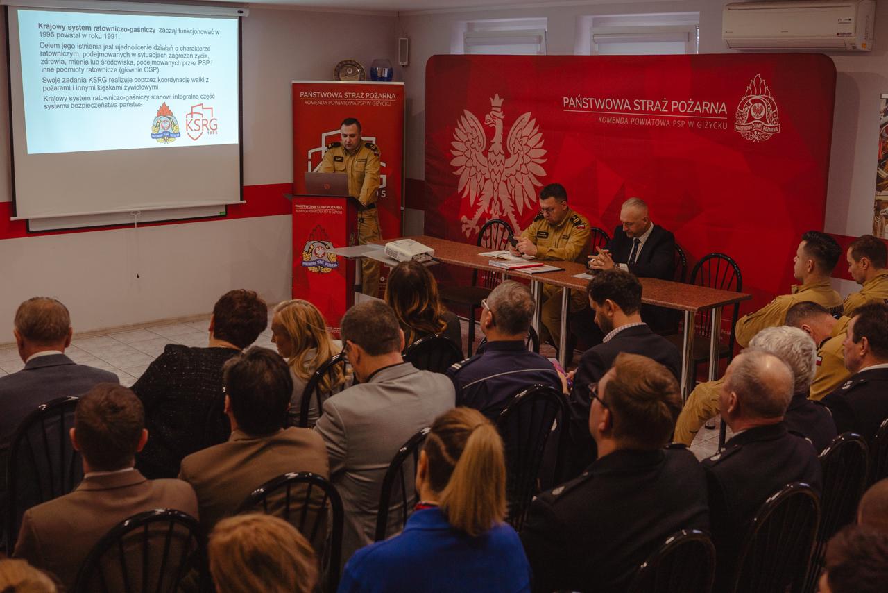 28 lutego 2025 r. w Komendzie Powiatowej PSP w Giżycku odbyła się narada roczna, podsumowująca działalność ochrony przeciwpożarowej w powiecie giżyckim za rok 2024.