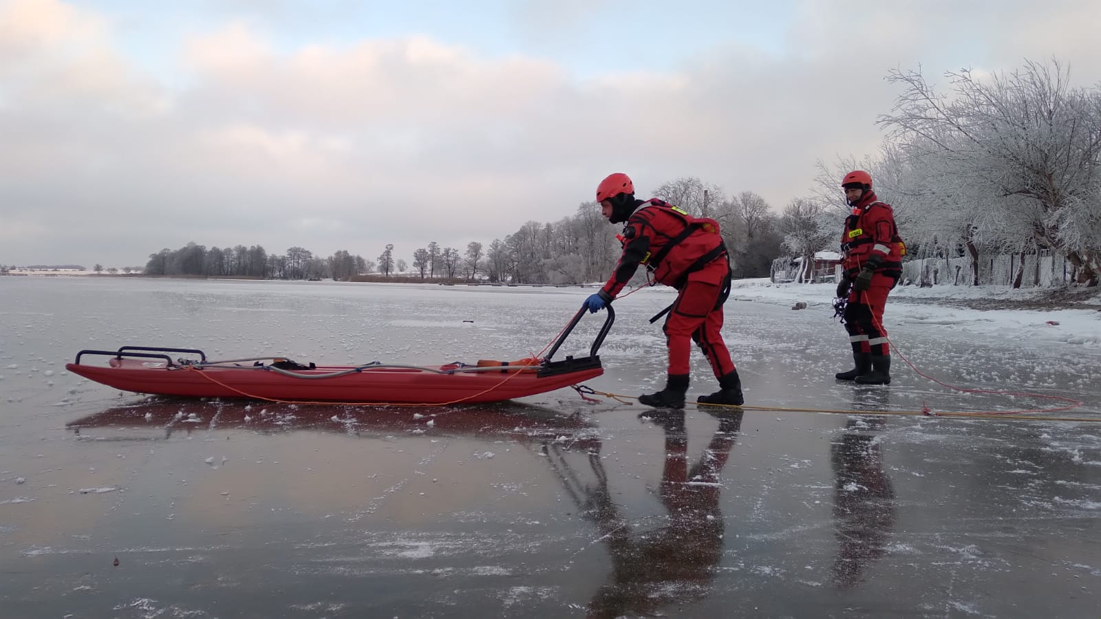 Tuż po pojawieniu się pierwszego lodu na jeziorach strażacy rozpoczęli cykl ćwiczeń którego zadaniem było doskonalenie umiejętności z zakresu ratownictwa wodnego. Świeży, łamiący się lód przedstawiał warunki zbliżone do tych, w których strażacy muszą pracować w sytuacji realnego zagrożenia.