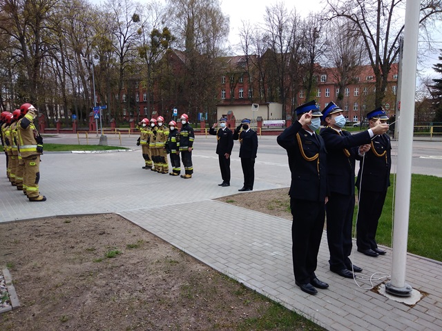 Z okazji Dnia Flagi Rzeczypospolitej Polskiej w Komendzie Powiatowej PSP w Giżycku miała miejsce uroczysta zmiana służby.