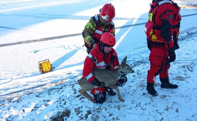 Lód pokrywający jeziora okazał się zdradliwy dla zwierząt, które w wyniku jego załamania znalazły się w wodzie i nie mogły wydostać się na brzeg o własnych siłach. Małej sarnie i łosiom pomocy udzielili giżyccy strażacy i ratownicy MOPR.