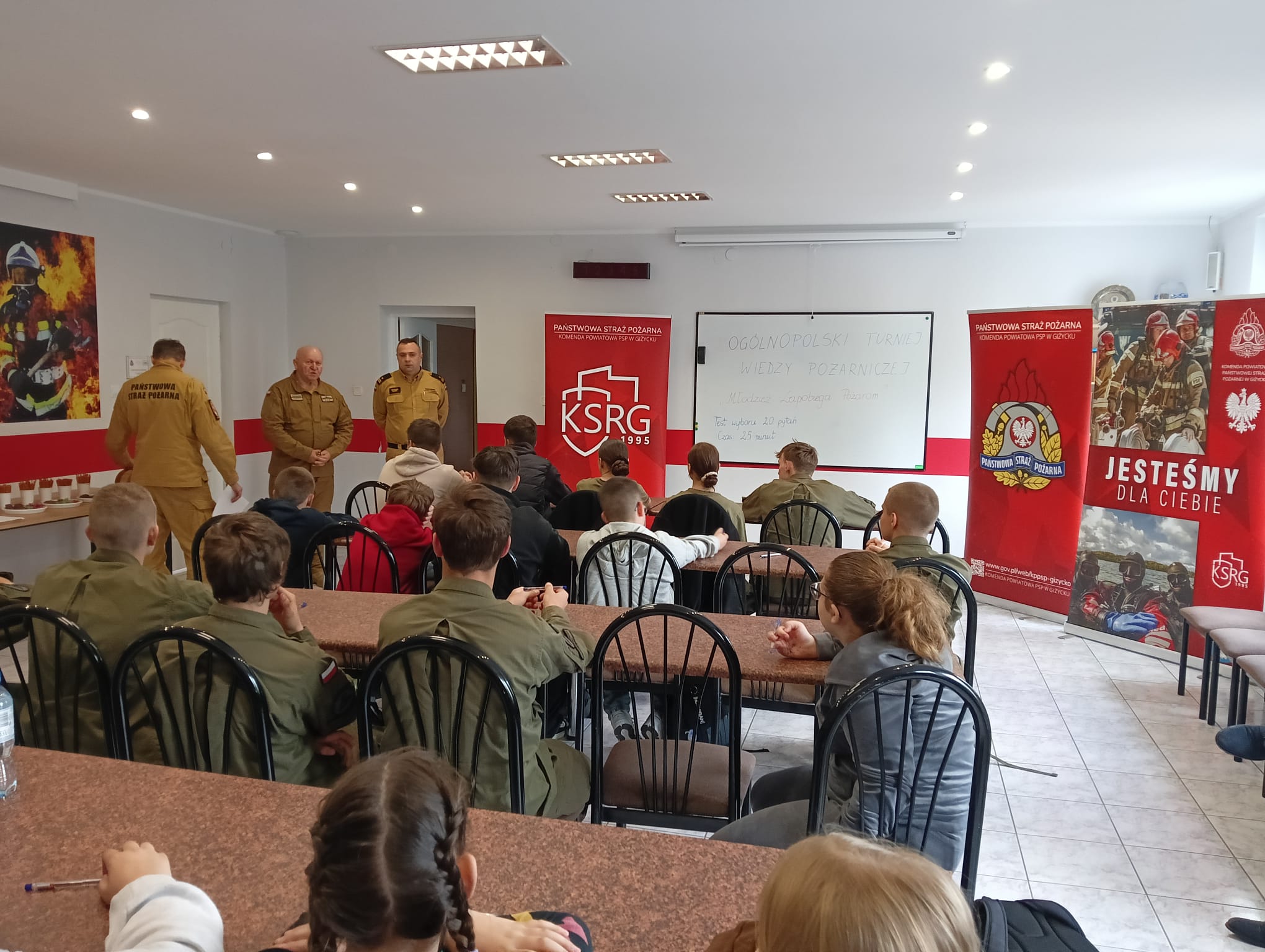 W dniu 25 kwietnia w Komendzie Powiatowej Państwowej Straży Pożarnej w Giżycku odbyły się eliminacje powiatowe do Ogólnopolskiego Turnieju Wiedzy Pożarniczej "Młodzież zapobiega pożarom".