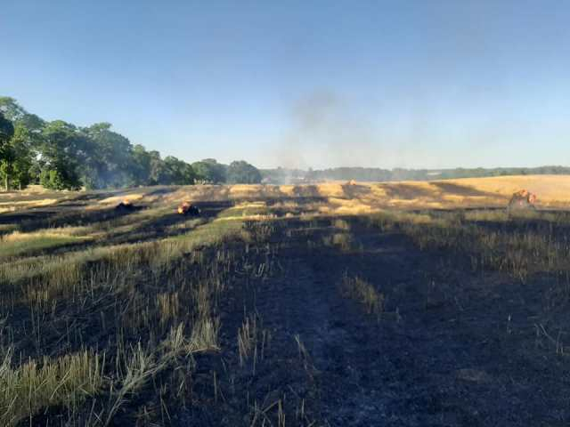 W dniu 12.08.2020 r. od godziny 17:09 11 zastępów Państwowej i Ochotniczej Straży Pożarnej brało udział w gaszeniu 50 h rżyska w okolicach miejscowości Ryn.