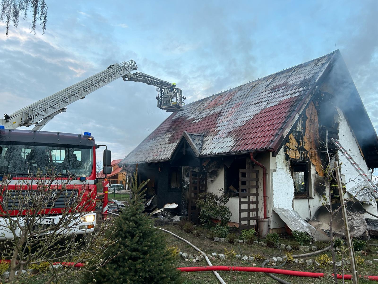 W chwili przybycia zastępów strażacy zastali rozwinięty pożar budynku, a ogień wydobywał sie ponad konstrukcję dachu. W trakcie działań ustalono, że mieszkańcy ewakuowali się samodzielnie przed przybyciem jednostek ochrony przeciwpożarowej. Działania polegały na podaniu 5 prądów gaśniczych z równoległym przeszukaniem obiektu. W trakcie działań niezbędne okazało sie równiez wykonanie prac rozbiórkowych drewnianiej konstrukcji domu. W sumie na miejscu zdarzenia pracowało 7 zastępów pożarniczych w sile 30 strażaków a działania trwały do godziny 21:34. Okoliczności zdarzenia wyjaśniają funkcjonariusze Policji.