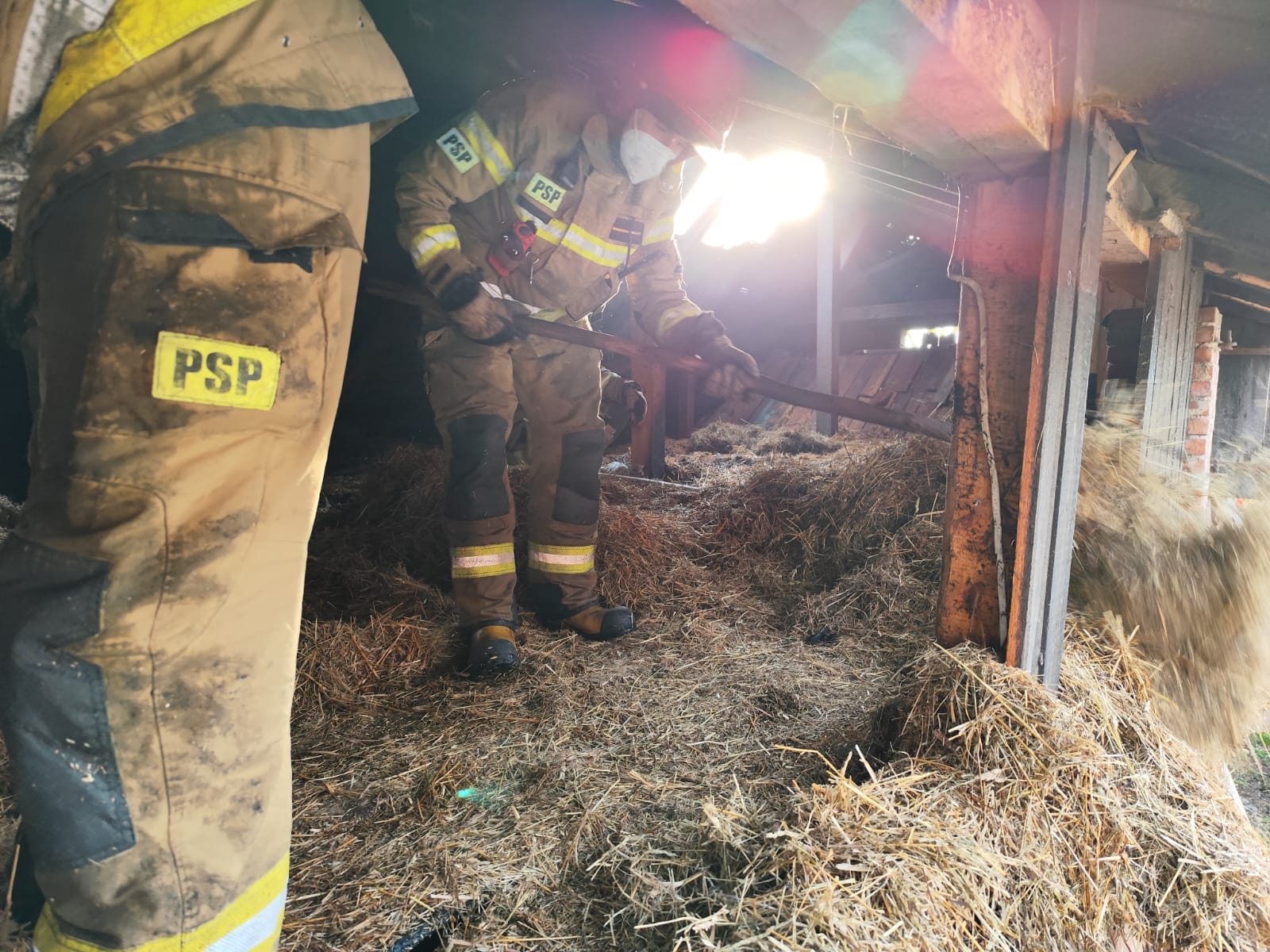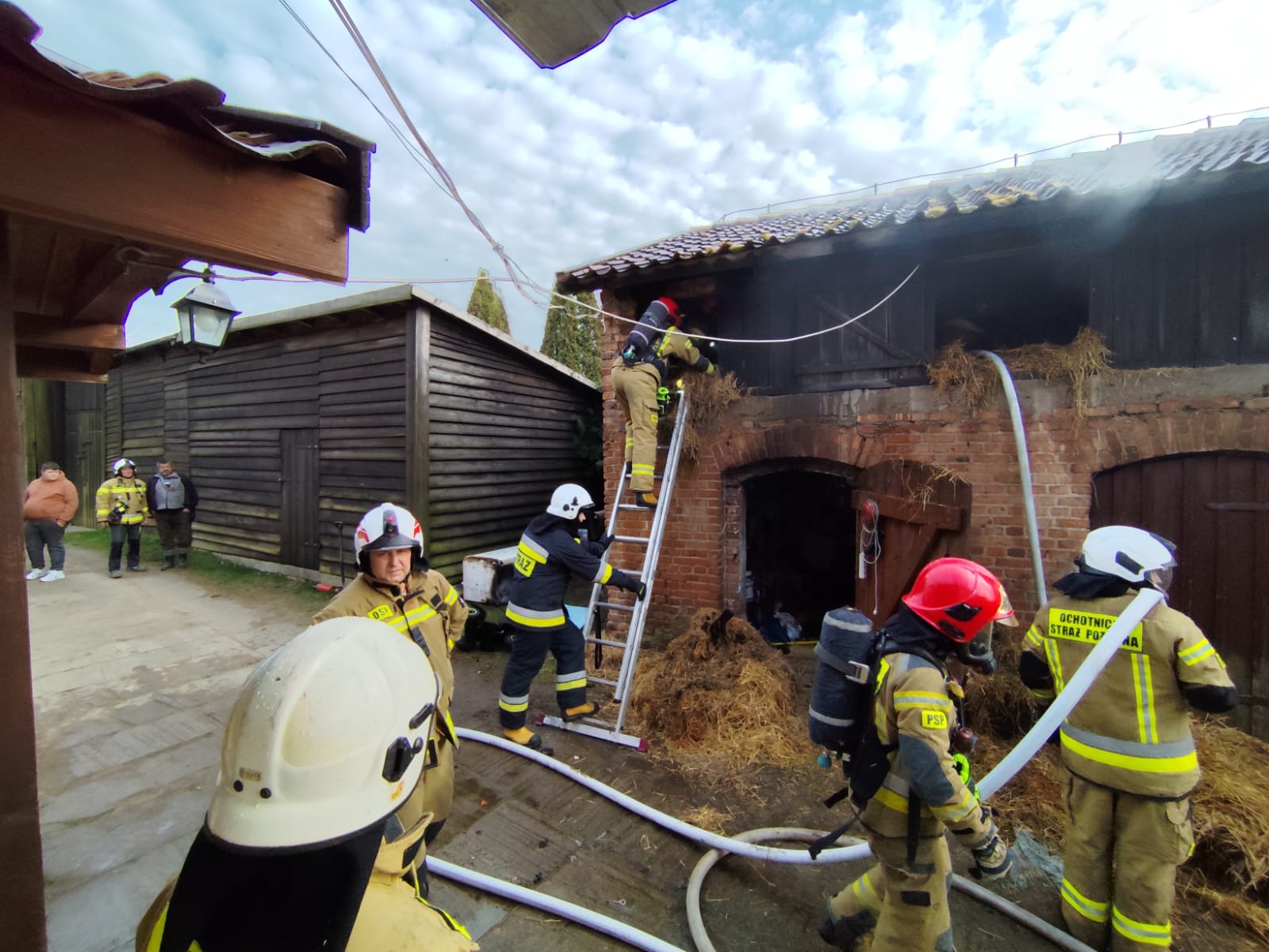 Po przyjeździe na miejsce zdarzenia KDR stwierdził, że w pomieszczeniu gospodarczym w starej oborze wybuchł pożar, który rozprzestrzenił się nad strop gdzie była przetrzymywana stara słoma. Właściciel do czasu przyjazdu pierwszych zastępów JOP częściowo ugasił pożar na poziomie gruntu, a ratownicy JOP dogasili pożar słomy i części dachu podając trzy prądy w natarciu. W zdarzeniu nikt nie został poszkodowany.