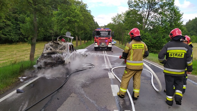 Pożar samochodu osobowego w Szczybałach Giżyckich