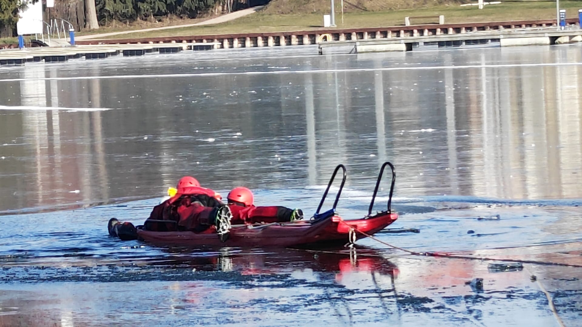 Straż Pożarna dysponuje specjalistycznym sprzętem do ratowania osób, pod którymi załamał się lód. Powiadom Nas jak najszybciej!
