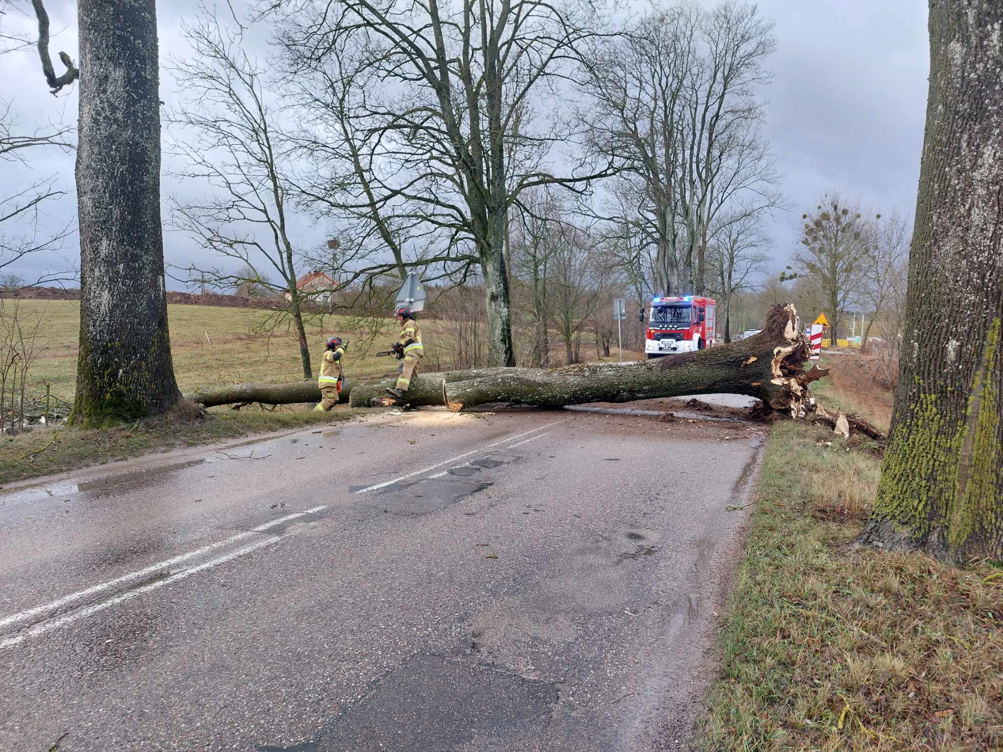 Nasi strażacy zanotowali 36 interwencji. Większość związana była z usuwaniem powalonych drzew – 32 zdarzenia. Skutkiem wczorajszej aury był również brak zasilania w energię elektryczną wielu gospodarstw. Dwa zdarzenia w których działali strażacy związane były z dostarczeniem agregatów prądotwórczego dla chorych w celu podtrzymania aparatury utrzymującej jego funkcje życiowe.