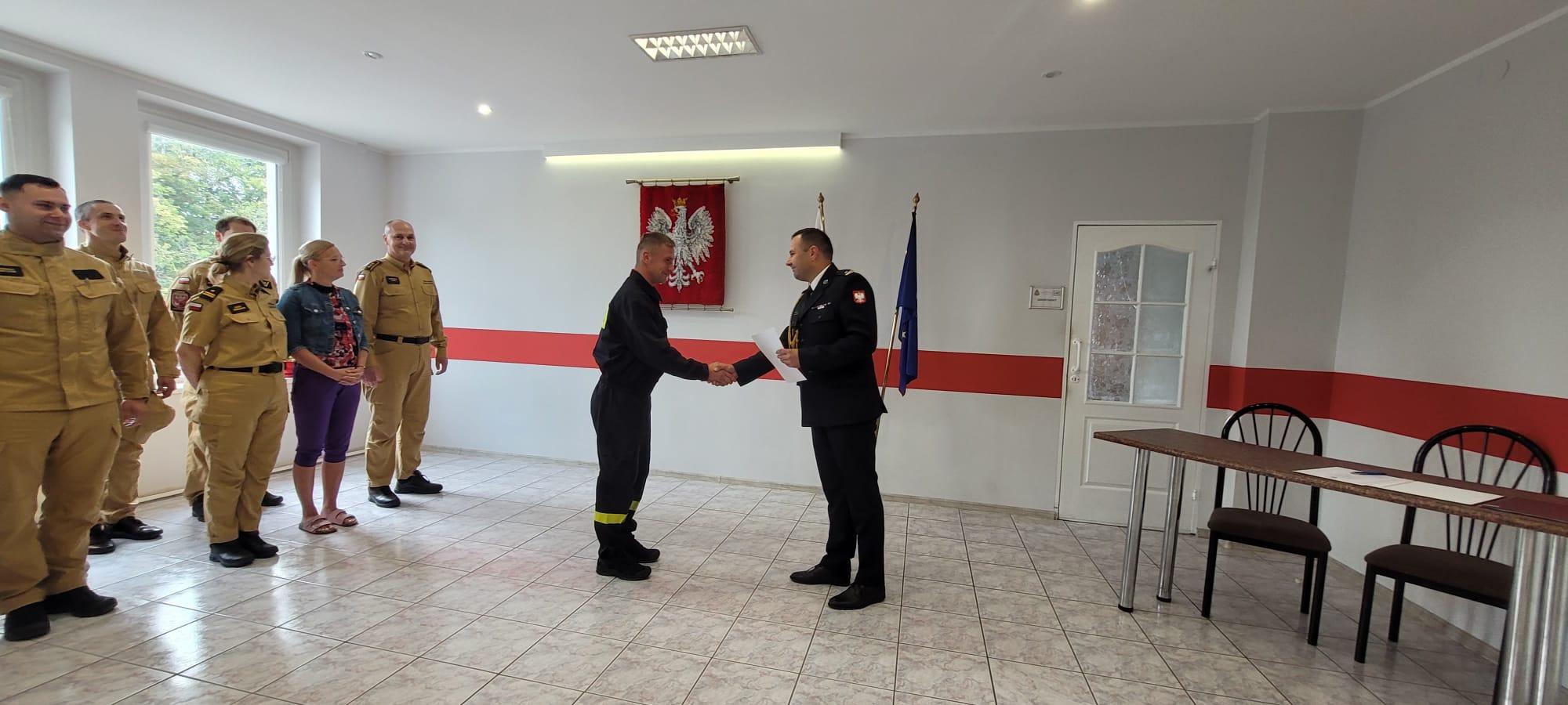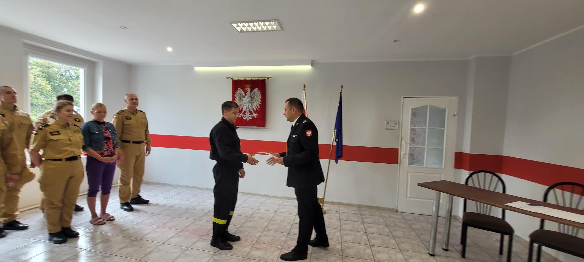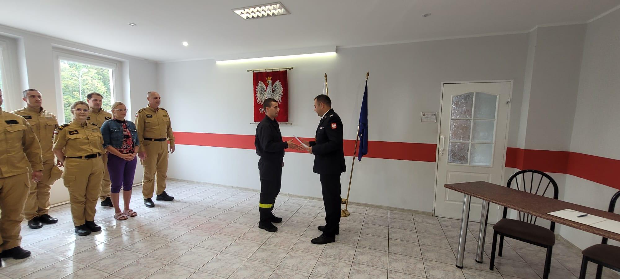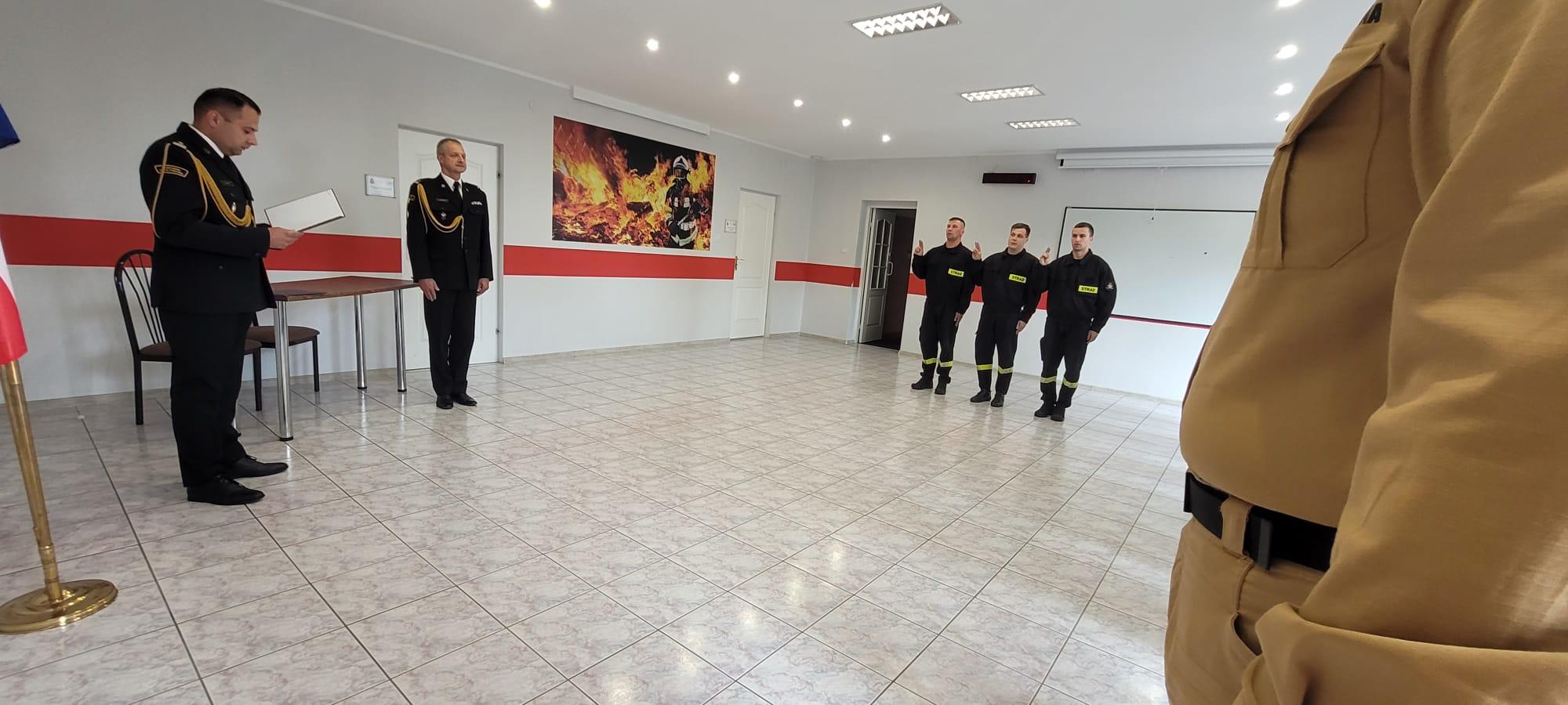 Podczas uroczystej zbiórki pod dowództwem mł. bryg. Grzegorza Zubowicza, w obecności Dowódcy Jednostki Ratowniczo - Gaśniczej, załogi i pracowników komendy, Komendant Powiatowy Państwowej Straży Pożarnej mł. bryg. mgr inż. Mateusz Pupek przyjął je od trzech nowych pracowników: