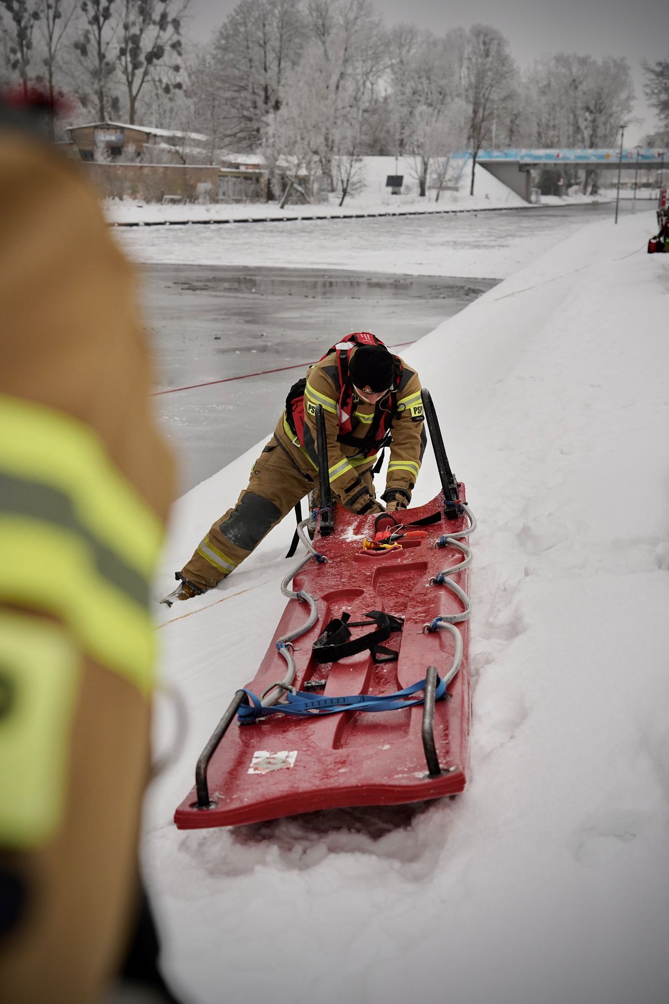 Aby być przygotowanymi na takie sytuacje, strażacy regularnie prowadzą specjalistyczne ćwiczenia ratownicze na zamarzniętych akwenach.