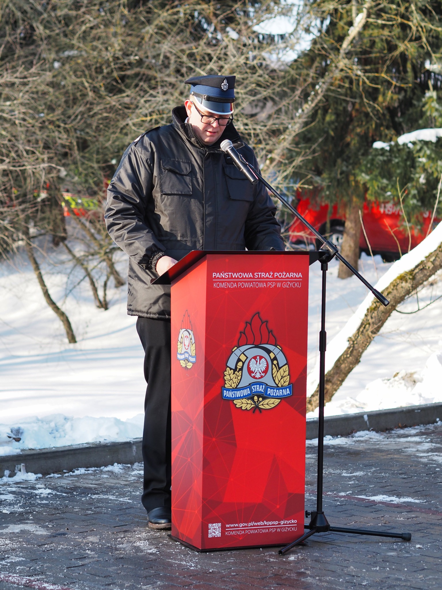 Podczas uroczystego przekazania nowego pojazdu strażackiego swoją obecnością wydarzenie uświetnili Senator RP Jolanta Piotrowska, Marszałek Województwa Warmińsko-Mazurskiego Marcin Kuchciński, Wicewojewoda Warmińsko-Mazurski Zbigniew Szczypiński oraz Warmińsko-Mazurski Komendant Wojewódzki Państwowej Straży Pożarnej w Olsztynie nadbryg. mgr inż. Michał Kamieniecki oraz Dyrektor Zarządu Wykonawczego ZOW ZOSP RP województwa warmińsko-mazurskiego druh Maciej Jasiński.