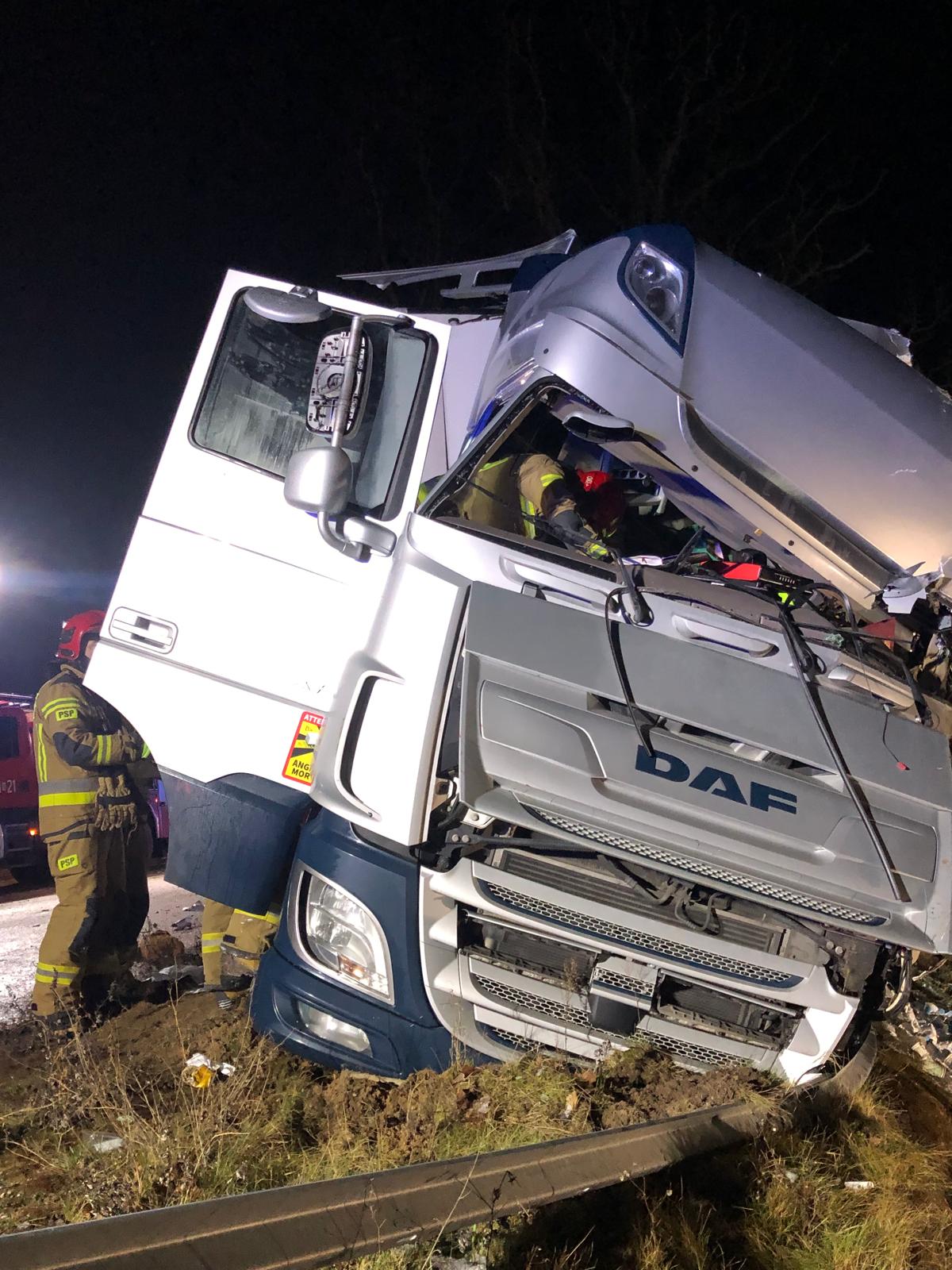 W środę, 8 styczna w godzinach porannych br. giżyccy strażacy odnotowali zdarzenie drogowego z udziałem ciągnika siodłowego z naczepą. Na drodze krajowej 642 w pobliżu miejscowości Zielony Lasek gmina Ryn kierujący DAF stracił panowanie nad pojazdem. Samochód uderzył w przydrożne drzewo, a następnie przejechał odcinek jezdni i uderzył w bariery energochłonne. Pojazdem podróżował tylko kierowca.