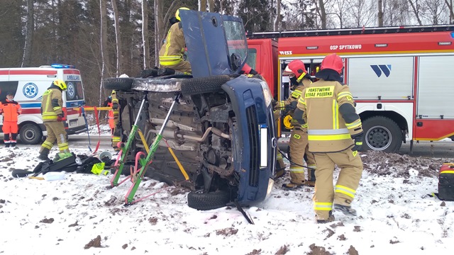 W dniu 21.12.2021 r. o godzinie 13:29 dyżurny Stanowiska Kierowania Komendanta Powiatowego PSP w Giżycku otrzymał informacje o wypadku samochodu osobowego w miejscowości Spytkowo. Na miejsce zadysponowano 3 zastępy Państwowej i Ochotniczej Straży Pożarnej.