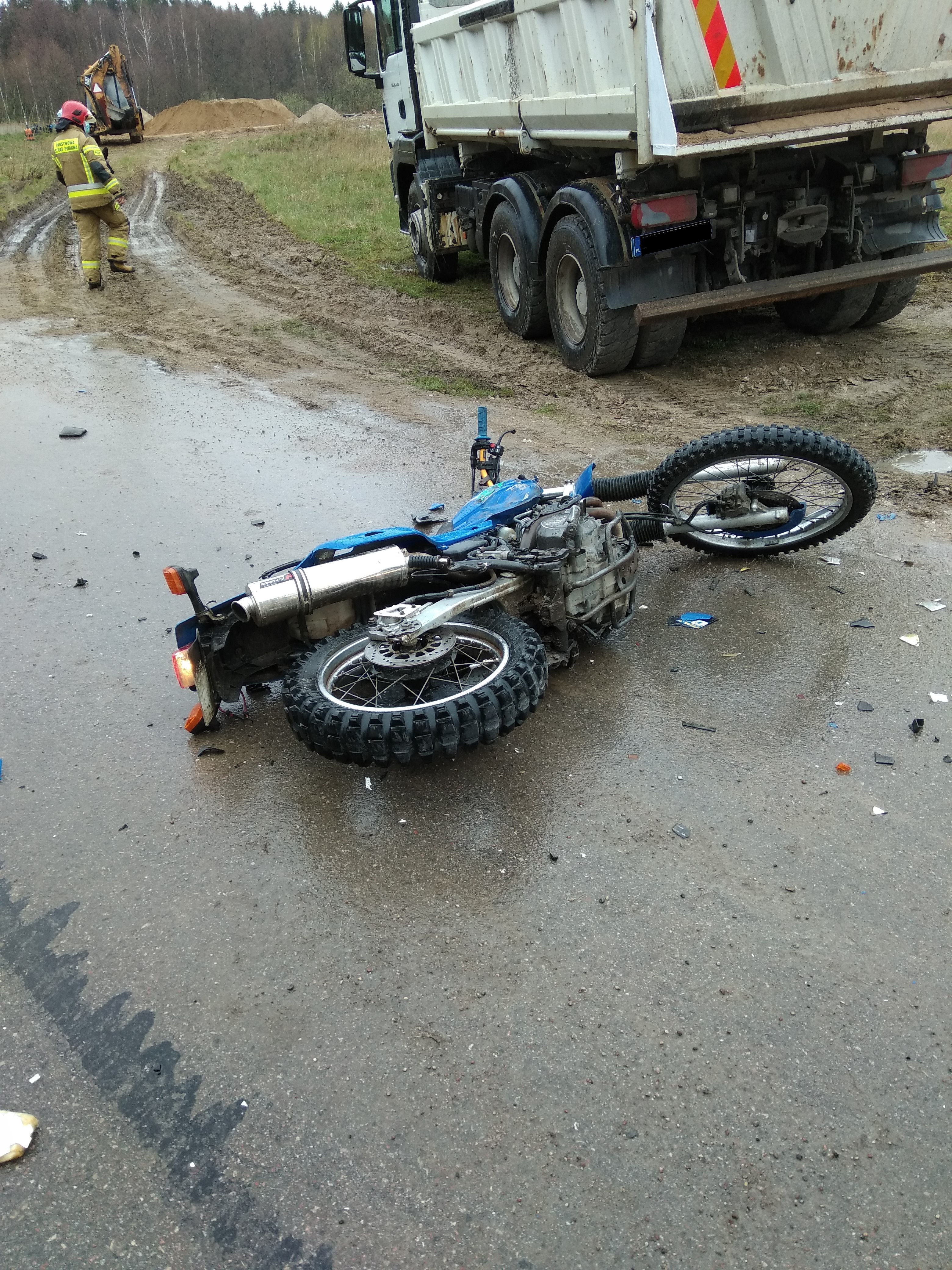 Zderzenie motocykla i samochodu cięzarowego w Spytkowie