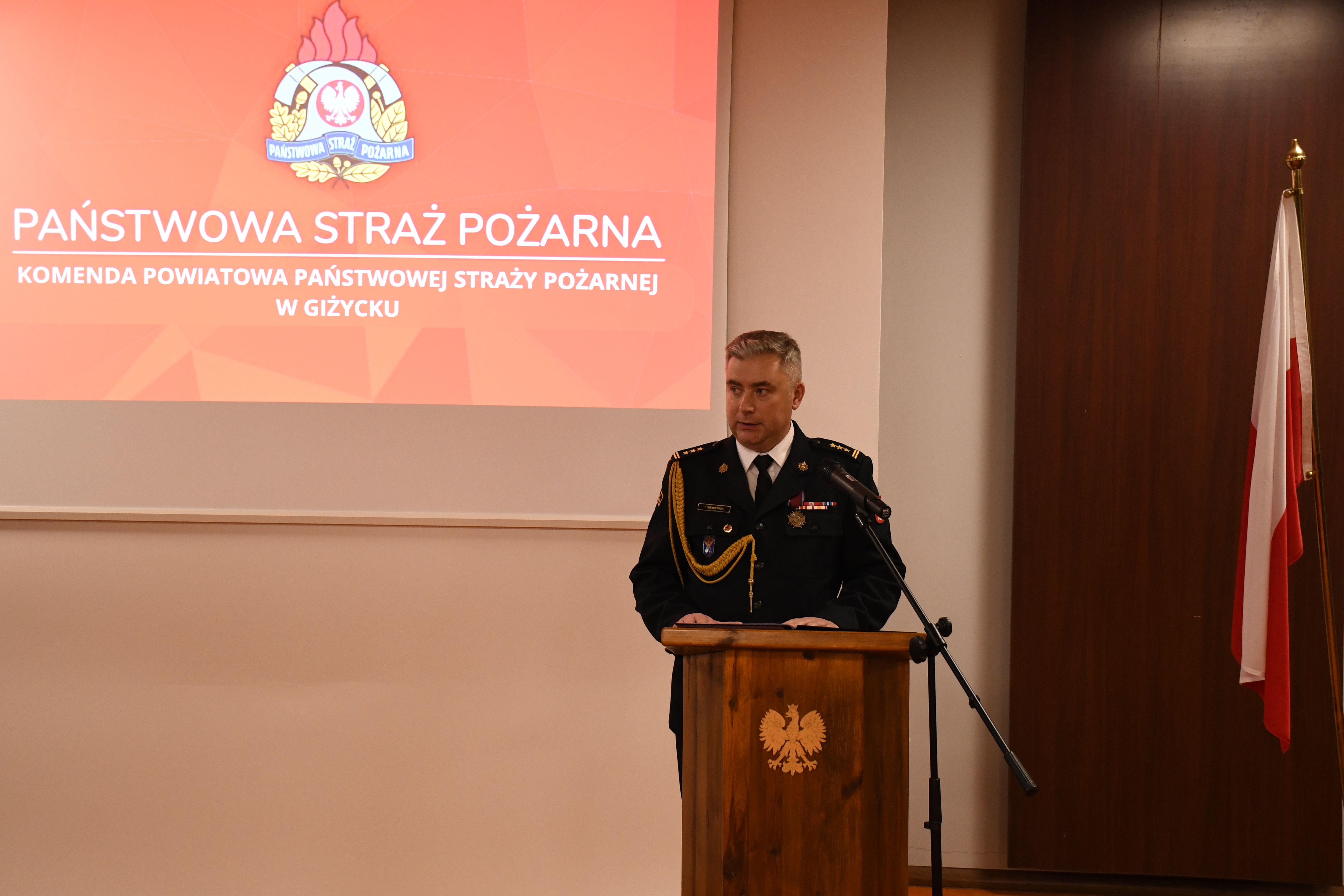 17 stycznia nastąpiła zmiana na stanowisku Komendanta Powiatowego Państwowej Straży Pożarnej w Giżycku. Tego dnia podczas uroczystej zbiórki st. bryg. Tomasz Siemieniuk zdał obowiązki giżyckiego Komendanta Powiatowego PSP i złożył meldunek st. bryg. Tomaszowi Ostrowskiemu p. o. Warmińsko-Mazurskiego Komendanta Wojewódzkiego PSP o zakończeniu służby w szeregach Państwowej Straży Pożarnej. Zgodnie z decyzją Komendanta Głównego Państwowej Straży Pożarnej st. bryg Tomasz Siemieniuk z dniem 17 stycznia 2024 roku zakończył służbę w PSP i przeszedł na zaopatrzenie emerytalne. Na uroczystości zgromadziło się wiele osób, między innymi rodzina odchodzącego na emeryturę, nadbryg. w st. spocz. Tomasz Komoszyński były Warmińsko-Mazurski Komendant Wojewódzki PSP, st. bryg. w st. spocz. Adam Jastrzębski były Zastępca Warmińsko-Mazurskiego Komendanta Wojewódzkiego PSP, komendanci powiatowi i miejscy PSP z naszego województwa oraz przedstawiciele Komendy Wojewódzkiej PSP w Olsztynie, a także przedstawiciele służb mundurowych, Wojska Polskiego i instytucji. Obecni byli również samorządowcy, duchowieństwo oraz pracownicy i funkcjonariusze giżyckiej Komendy Powiatowej PSP.