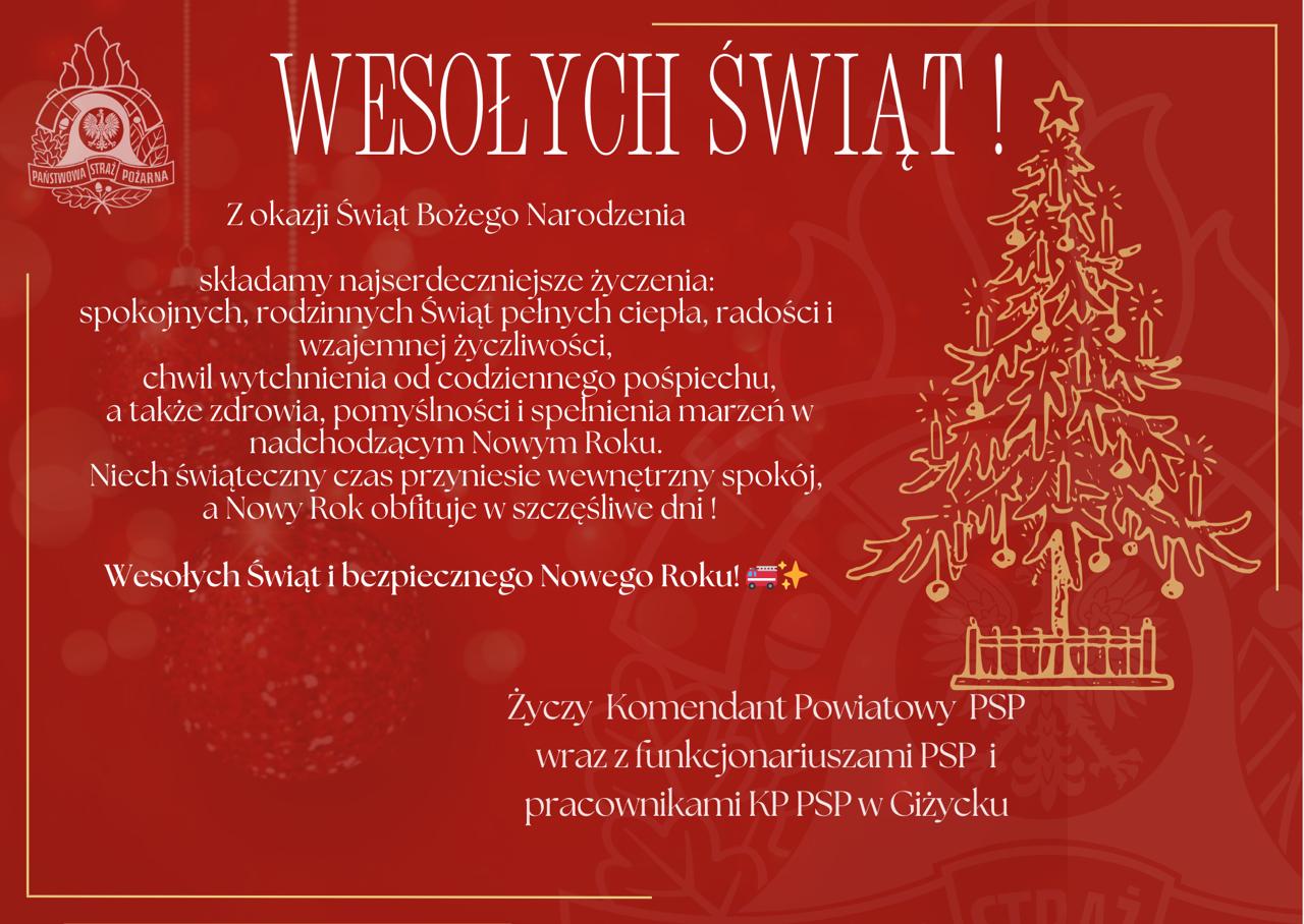 Życzenia Świąteczne Komendanta Powiatowego PSP w Giżycku 23.12.2025 Zdjęcia (1) Pokaż zdjęcie 1 z galerii.