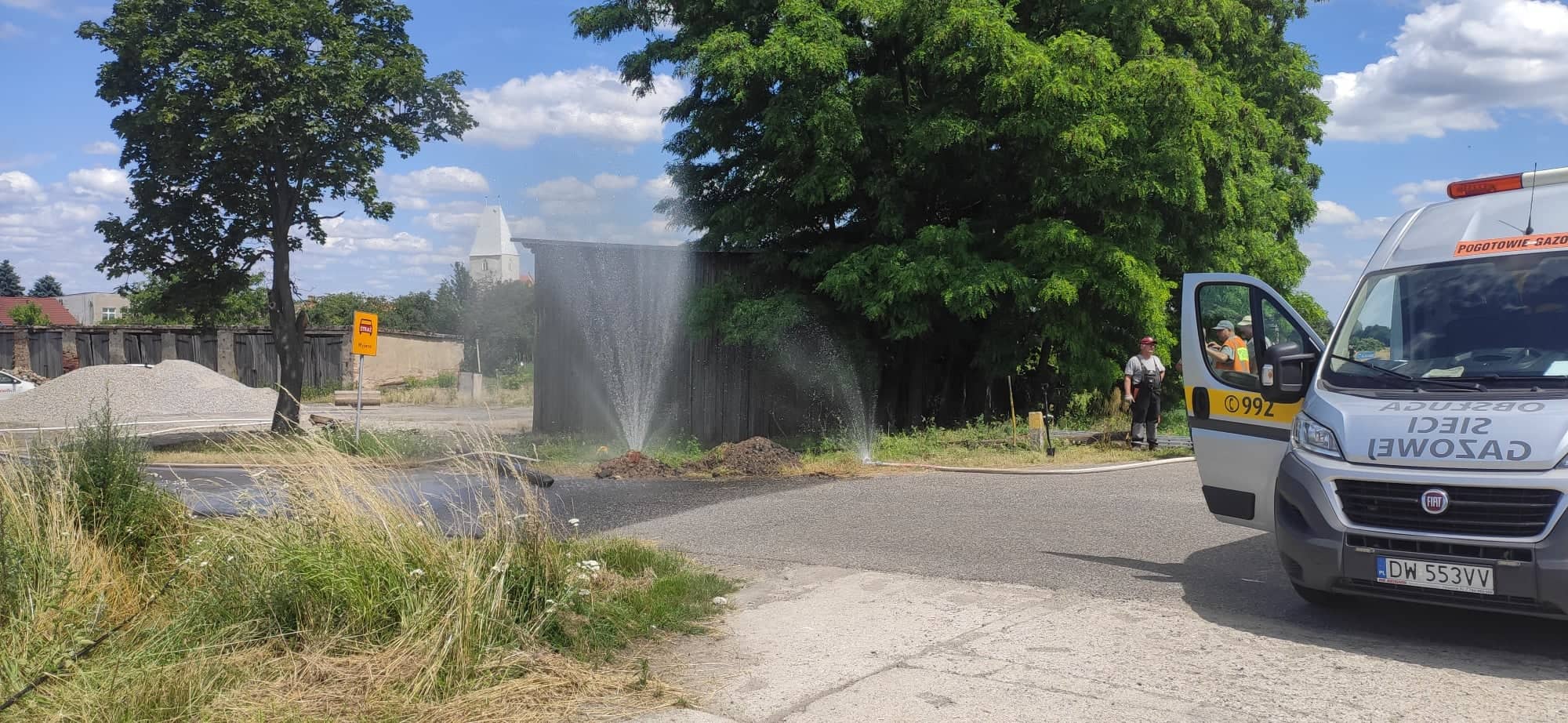 W wyniku prac ziemnych wykonywanych przez koparką uszkodzony został rurociąg gazowy średniego ciśnienia w miejscowości Kromolin. Zadysponowano SiS z gminy Żukowice, pogotowie gazowe oraz samochód operacyjny KP PSP Głogów wraz z zastępem OSP Jerzmanowa, które brały udział w zdarzeniu w Kurowicach przy pożarze dachu budynku jednorodzinnego.