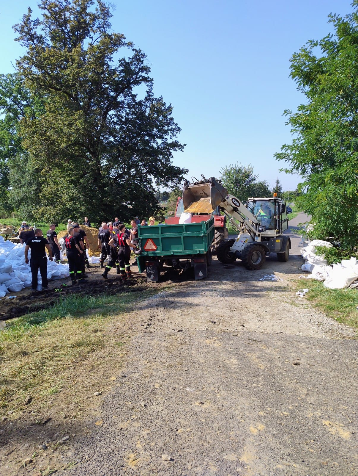 Na miejscu są wszystkie jednostki OSP gm. Żukowice, mieszkańcy (80 osób) oraz uczniowie Zespołu Szkół Ekonomicznych w Głogowie wraz z opiekunami (55 osób), prace trwają od wczorajszego popołudnia.