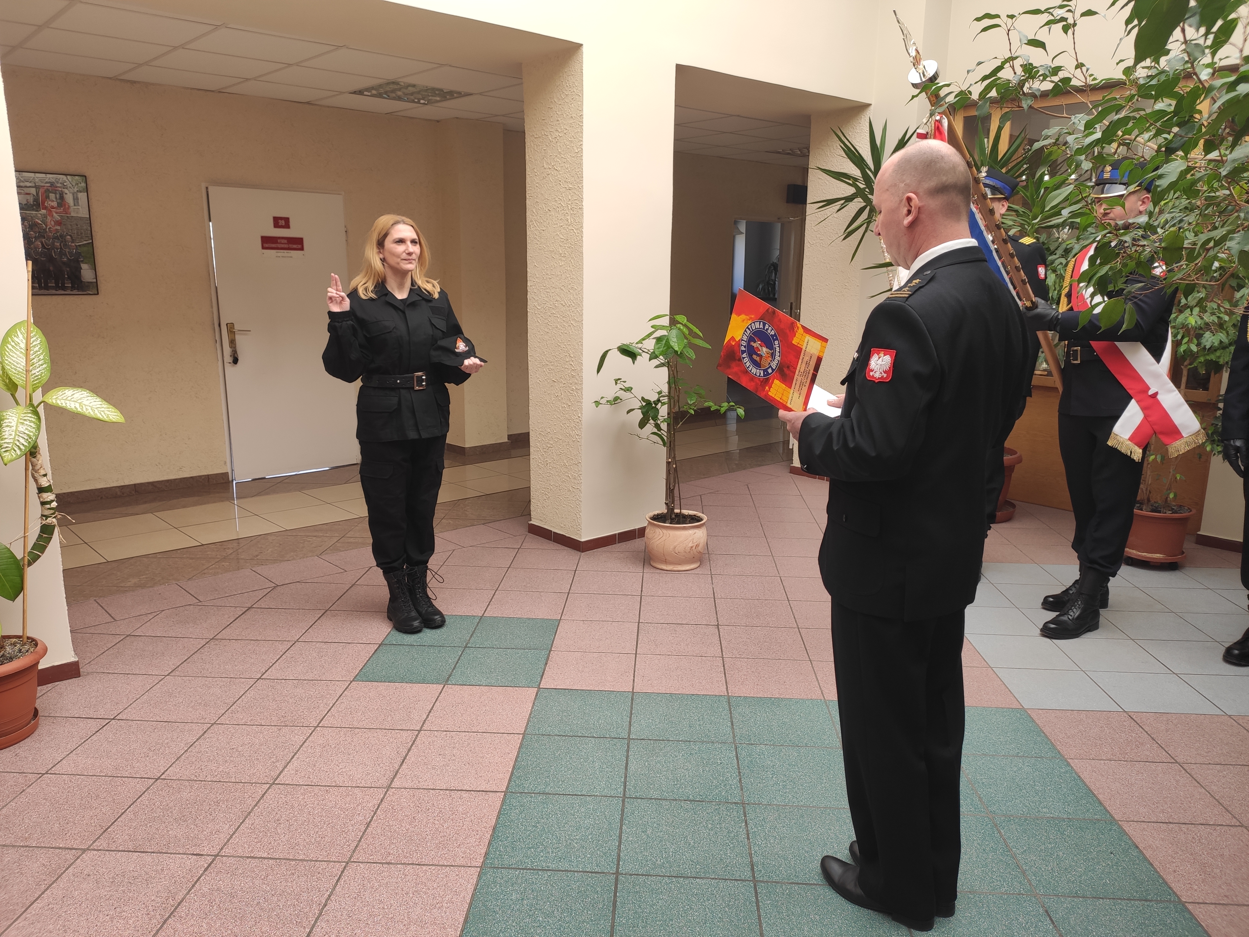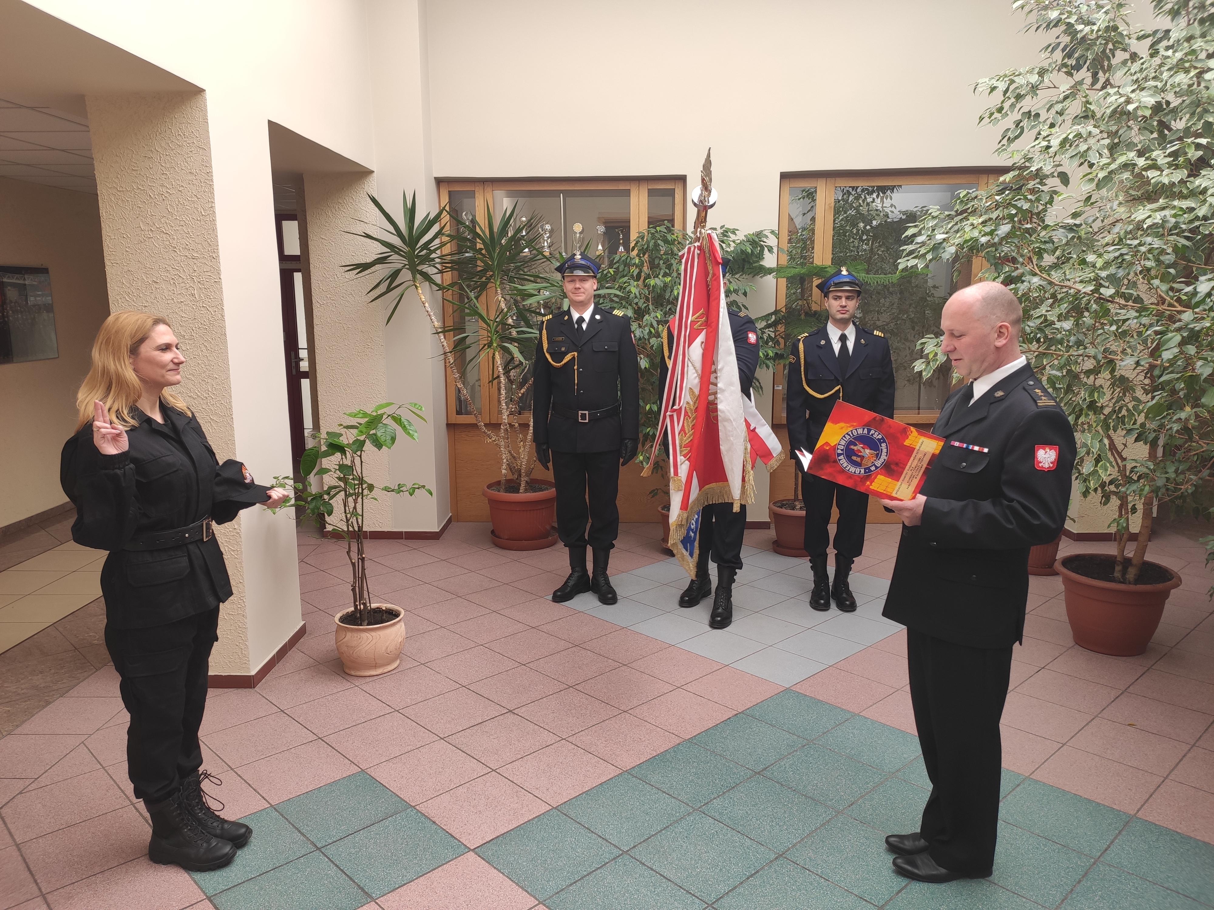 W czwartek 24 marca 2022 roku w Komendzie Powiatowej Państwowej Straży Pożarnej w Głogowie odbyło się uroczyste ślubowanie nowej funkcjonariuszki przyjętej do służby w Komendzie Powiatowej Państwowej Straży Pożarnej w Głogowie.