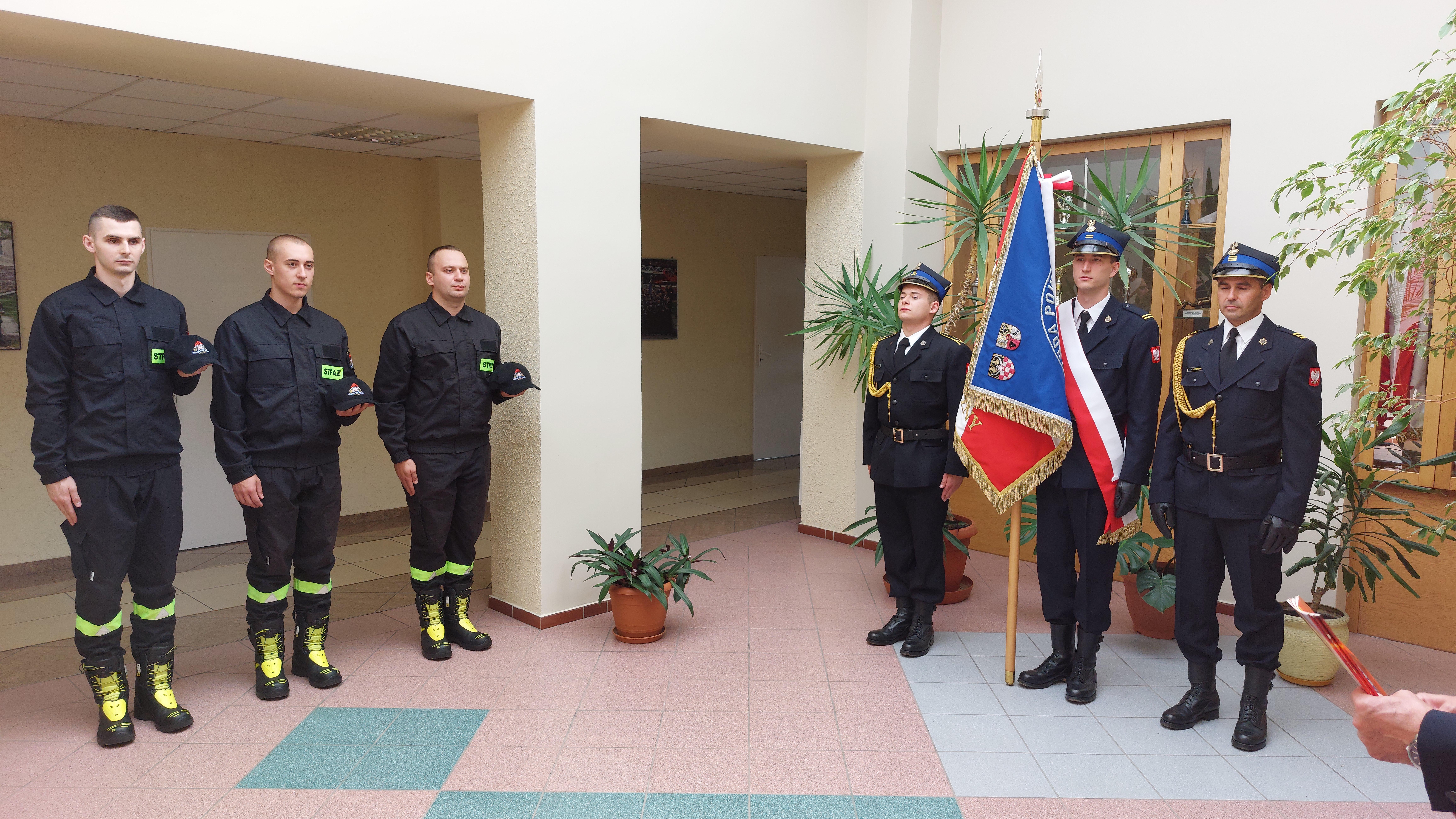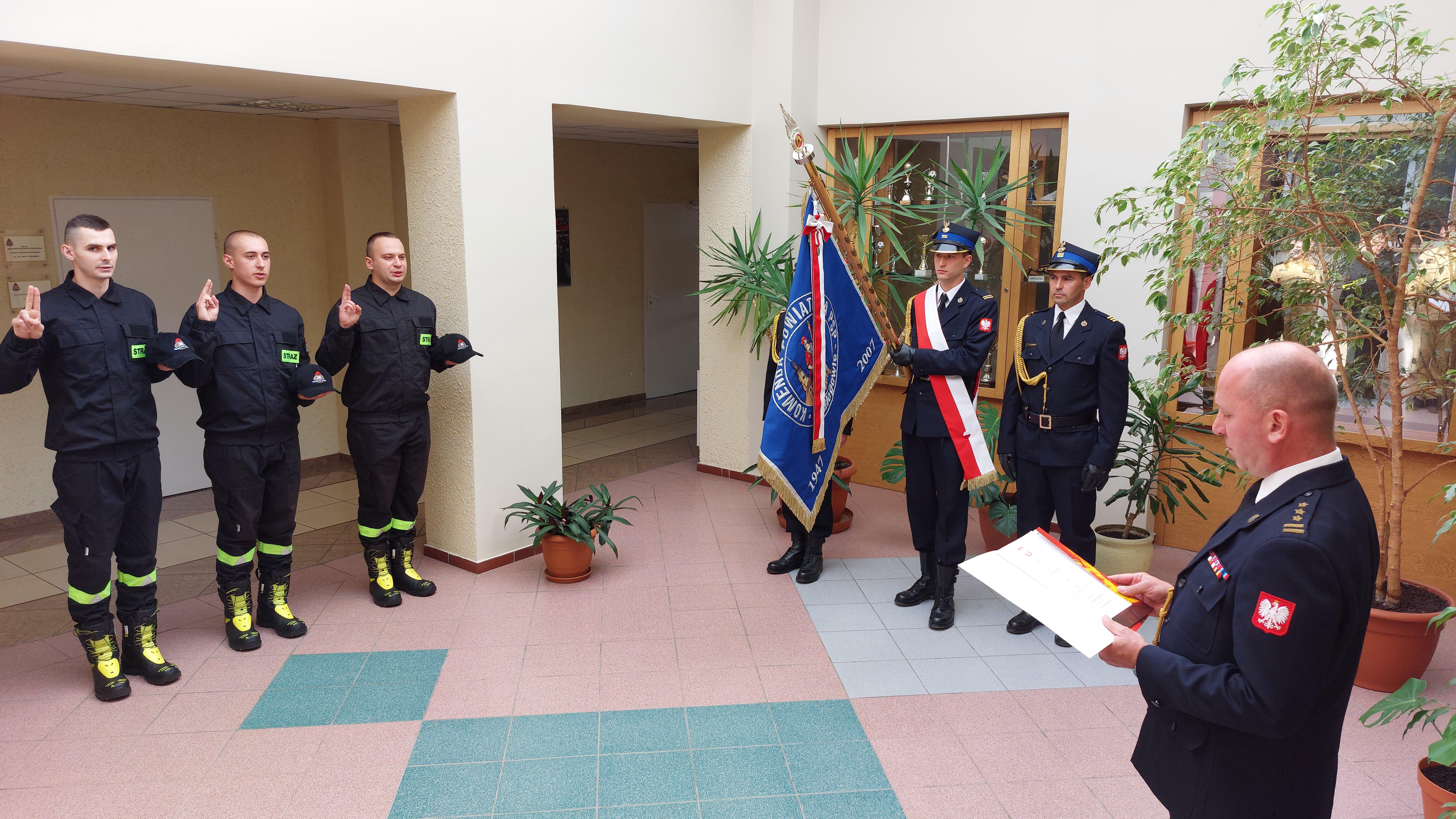 W środę 10 lipca 2024 roku w Komendzie Powiatowej Państwowej Straży Pożarnej w Głogowie odbyło się uroczyste ślubowanie trzech nowych funkcjonariuszy przyjętych do służby w Komendzie Powiatowej Państwowej Straży Pożarnej w Głogowie.