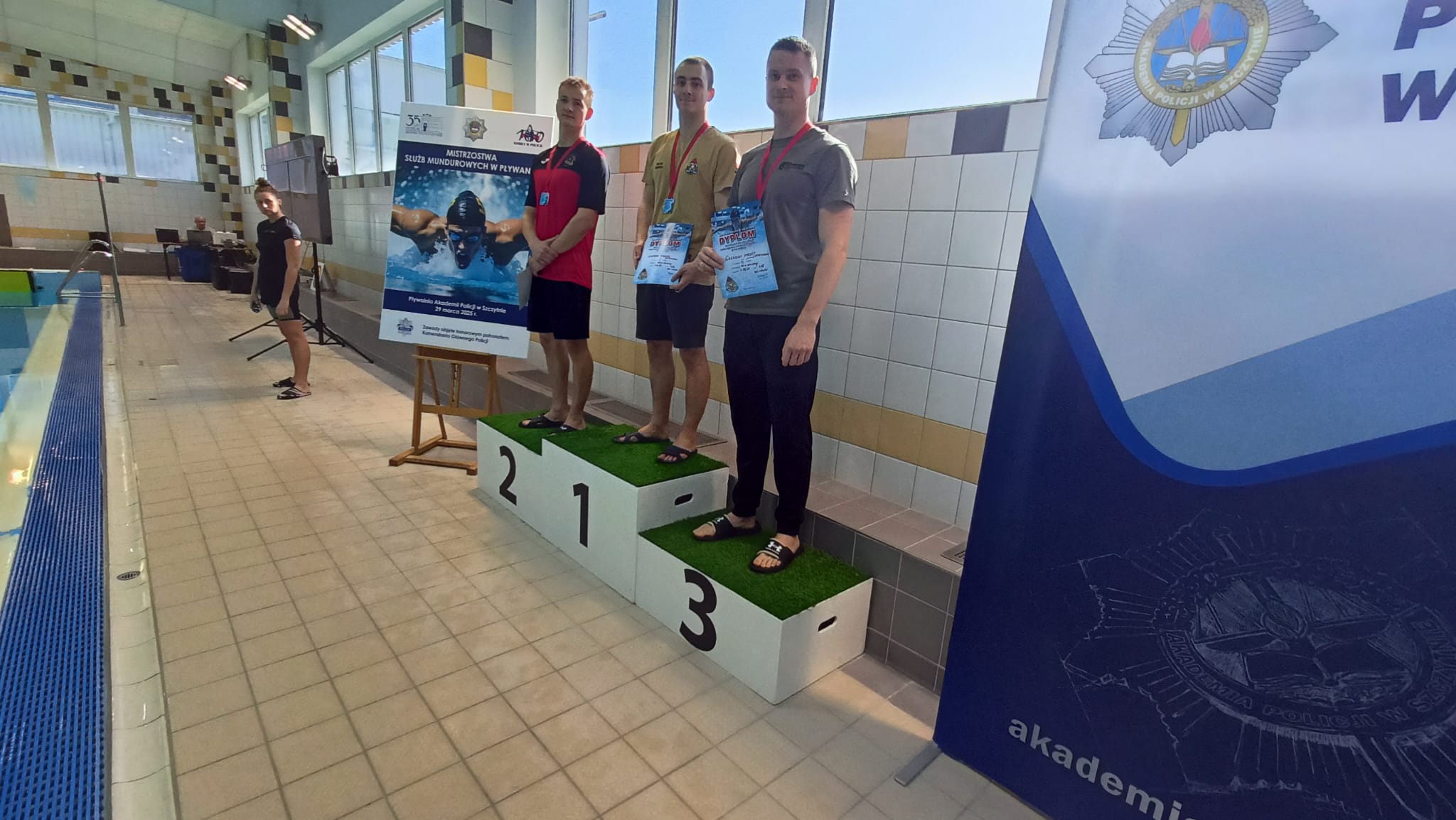 29 marca 2025 roku na pływalni Akademii Policji w Szczytnie odbyły się Mistrzostwa Polski Służb Mundurowych w Pływaniu, zorganizowane pod honorowym patronatem Komendanta Głównego Policji, nadinsp. Marka Boronia. To prestiżowe zawody o długoletniej tradycji, które co roku gromadzą najlepszych funkcjonariuszy różnych formacji mundurowych z całej Polski. W tegorocznej edycji nie zabrakło reprezentantów Komendy Powiatowej Państwowej Straży Pożarnej w Głogowie, którzy zaprezentowali się znakomicie.