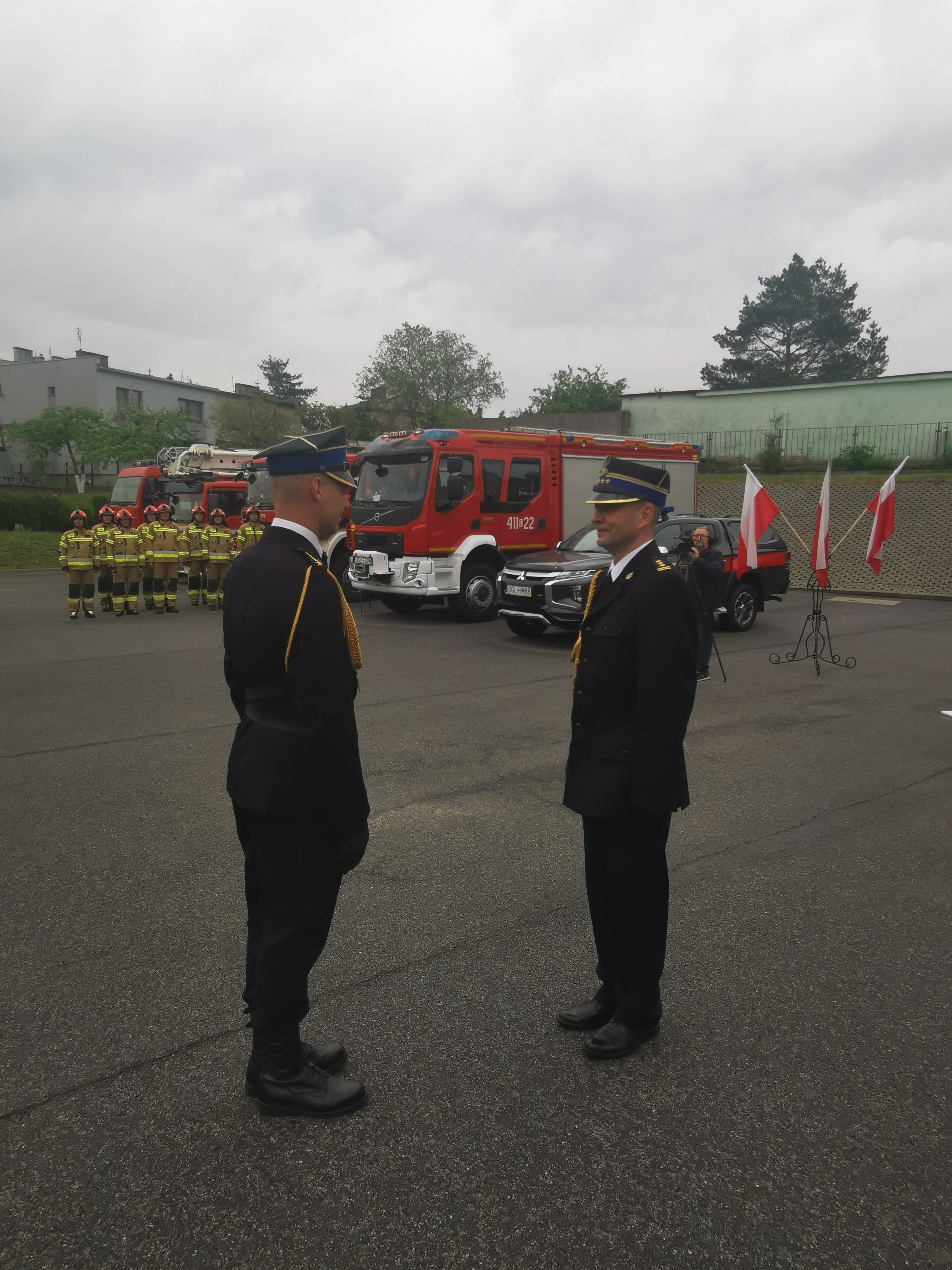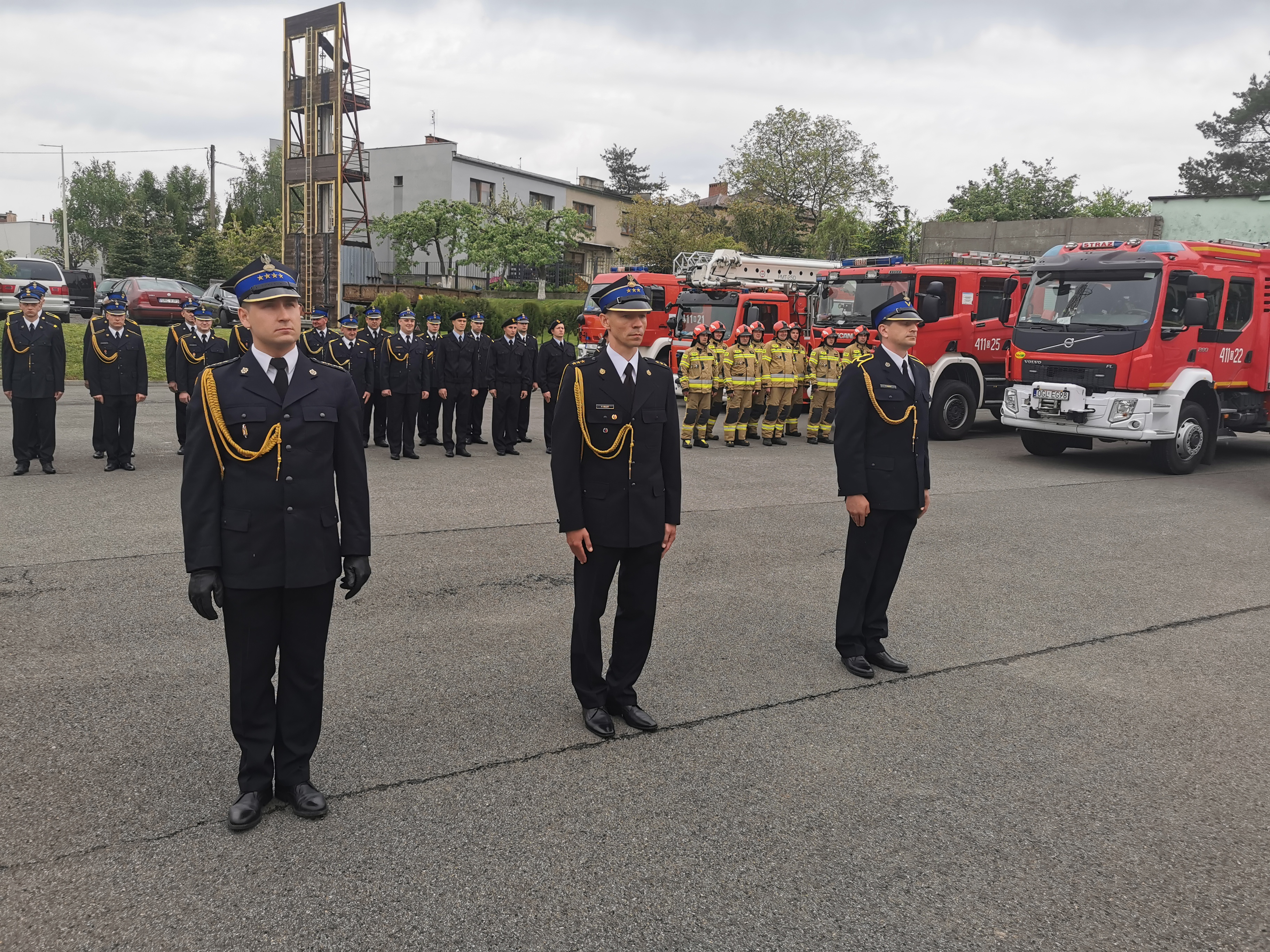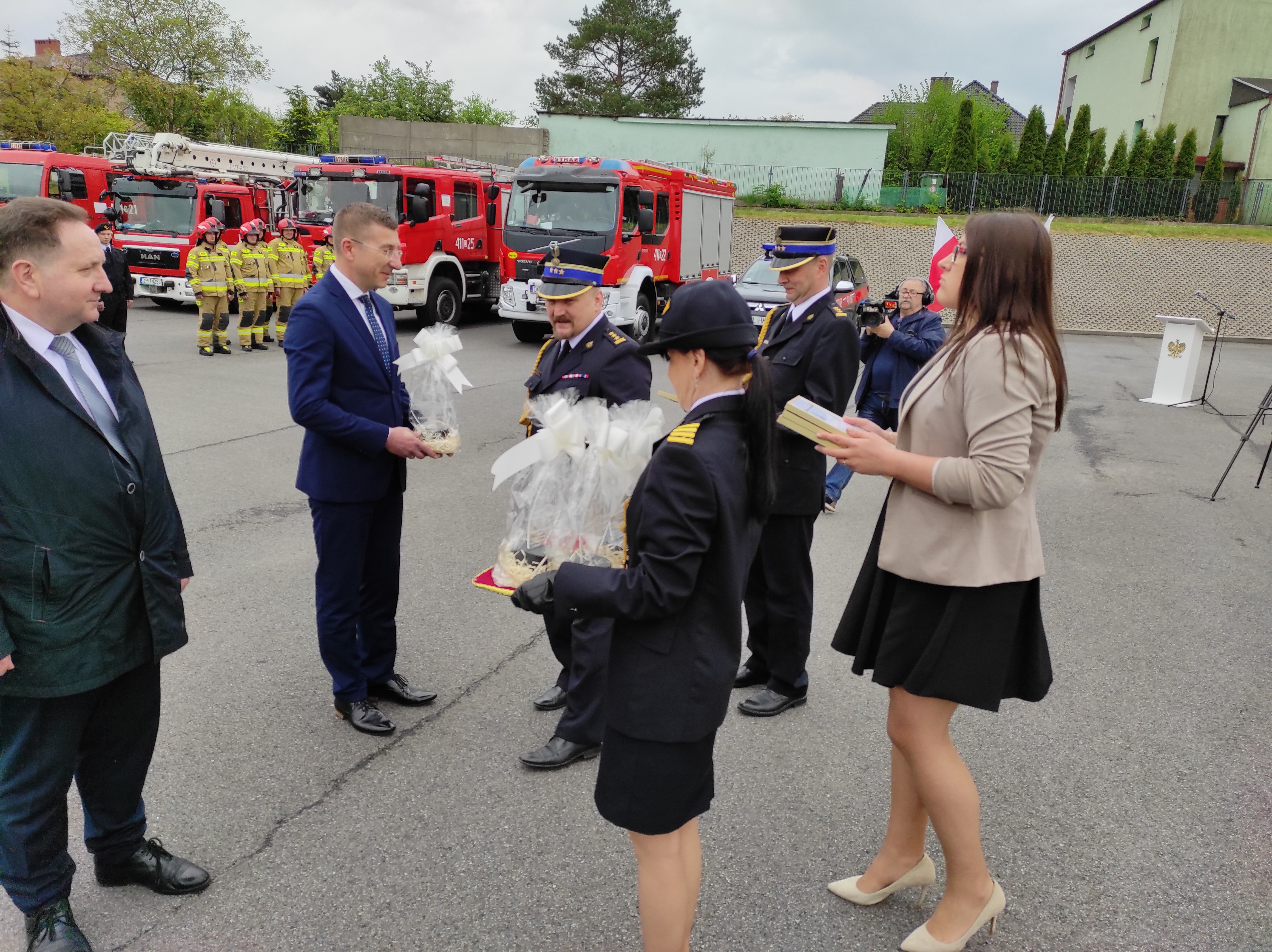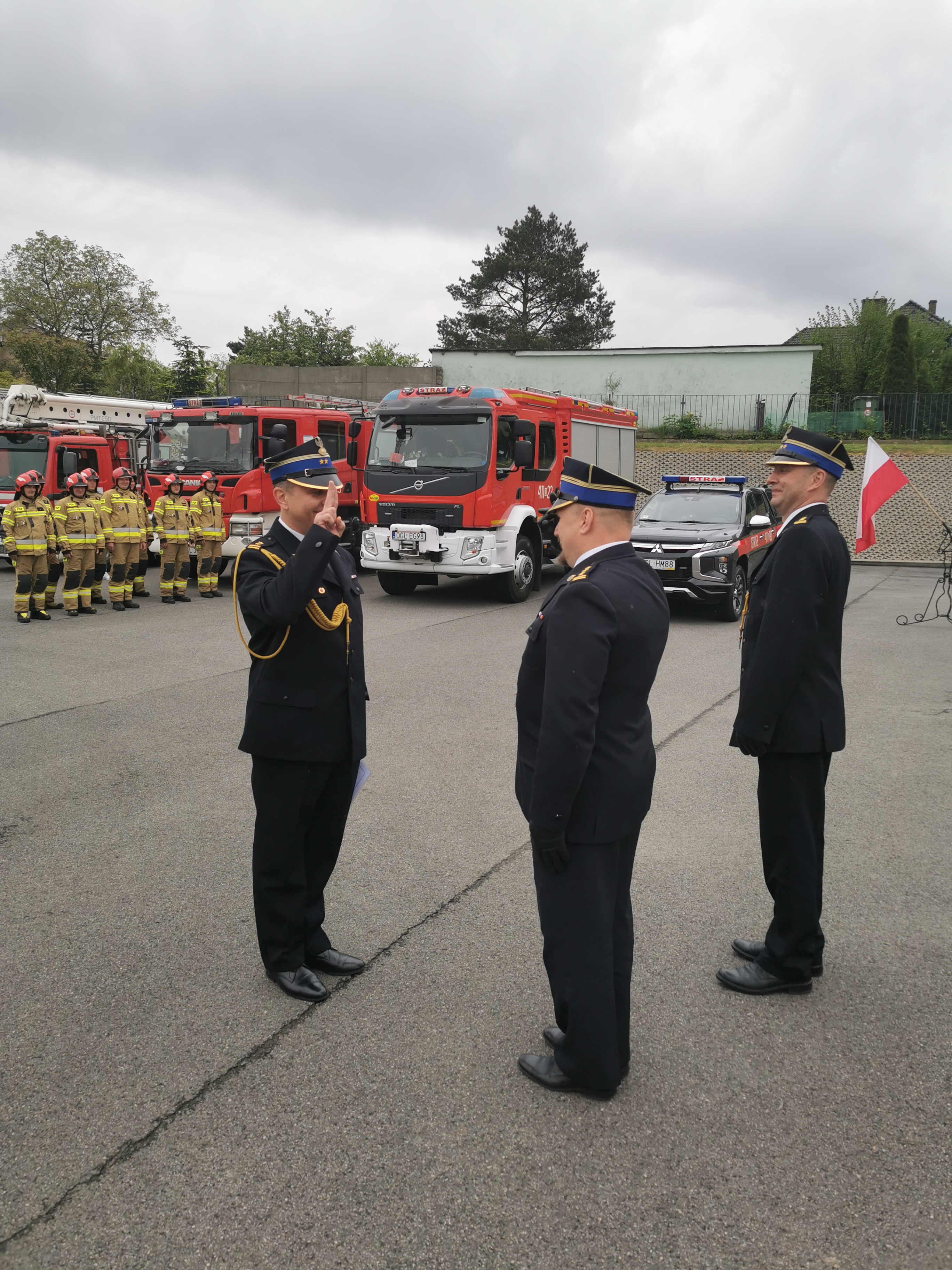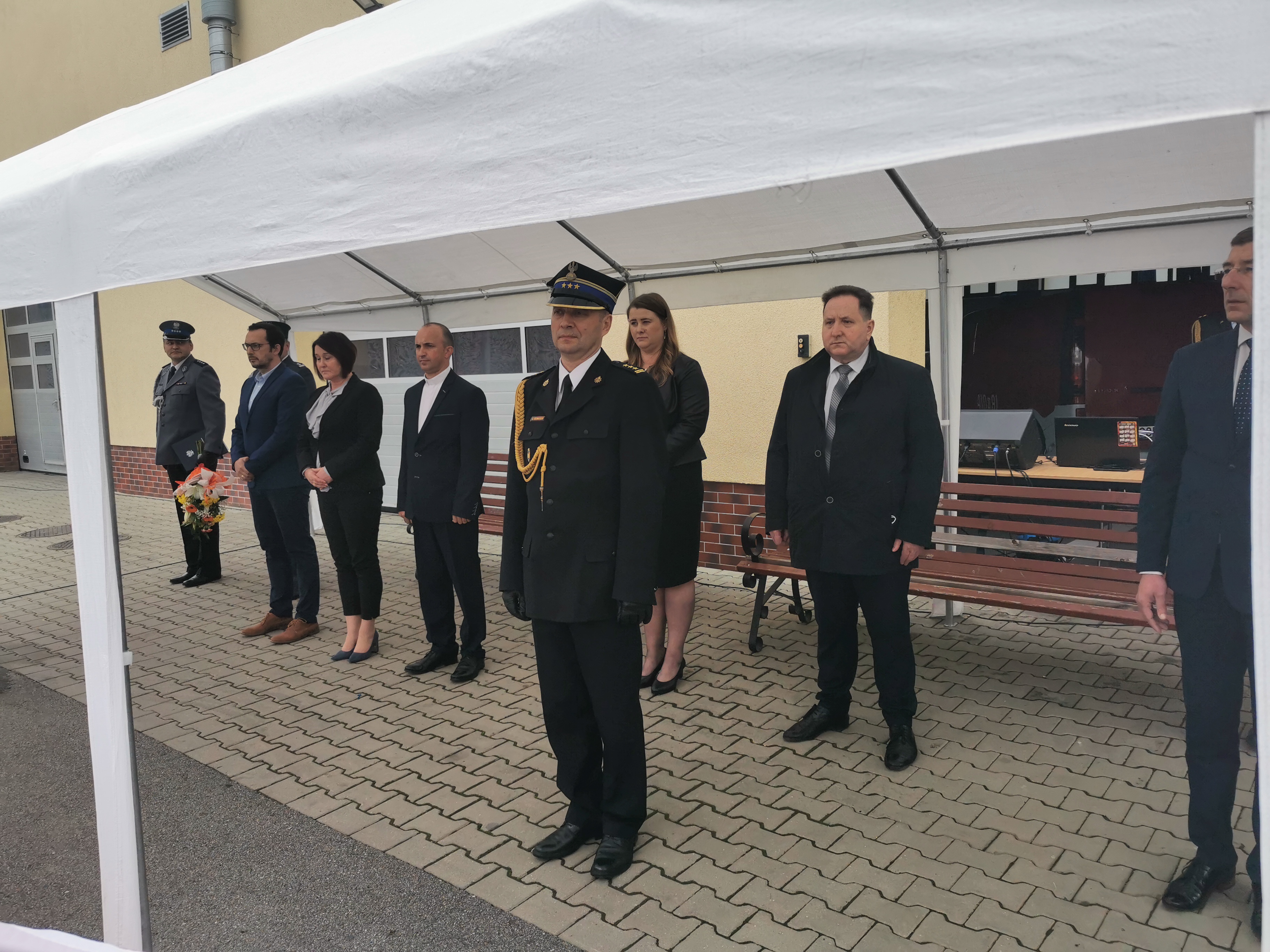 Uroczystość rozpoczęła się od złożenia meldunku Zastępcy Opolskiego Komendanta Wojewódzkiego PSP st. bryg. Arkadiuszowi Kuśmierskiemu przez dowódcę uroczystości st. kpt. Mateusza Szymusia.