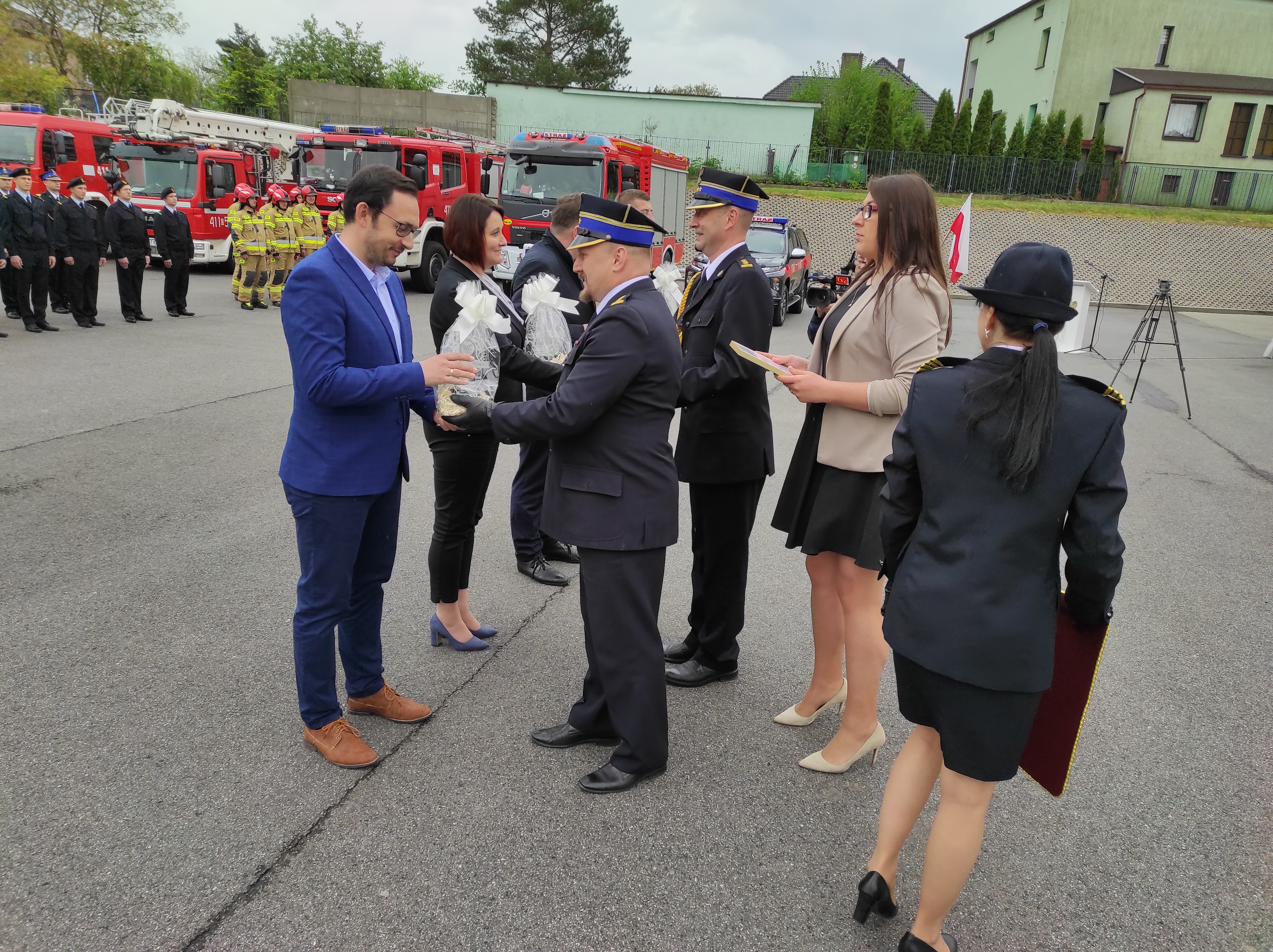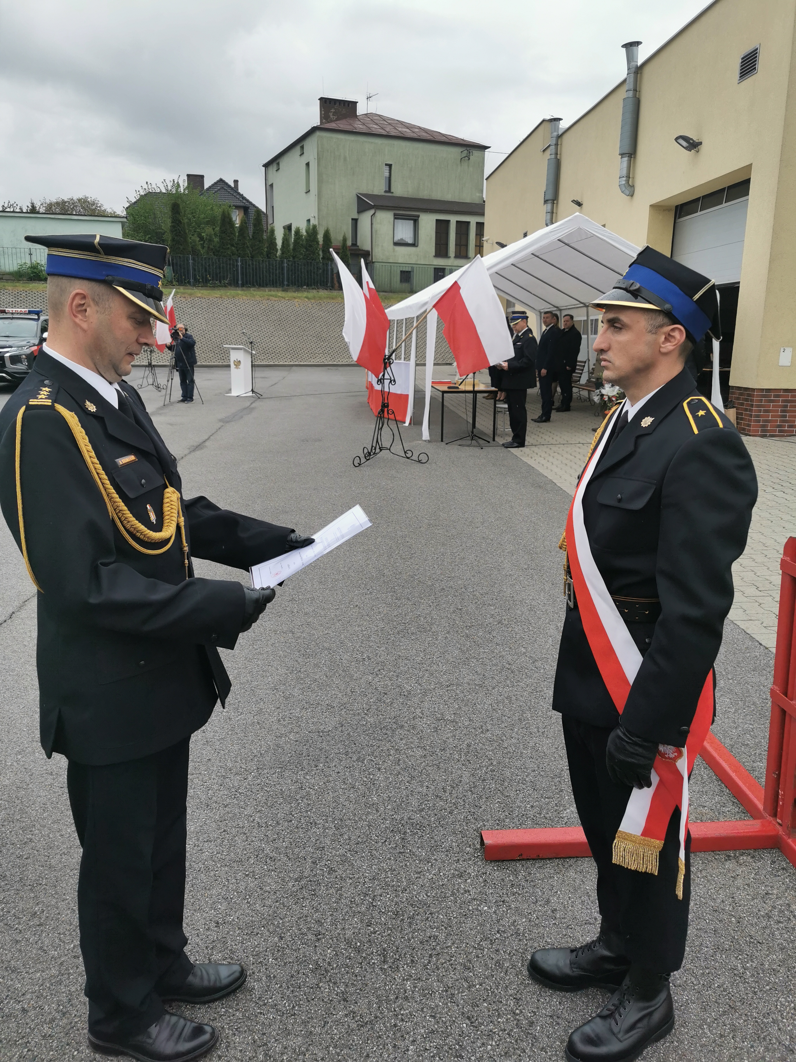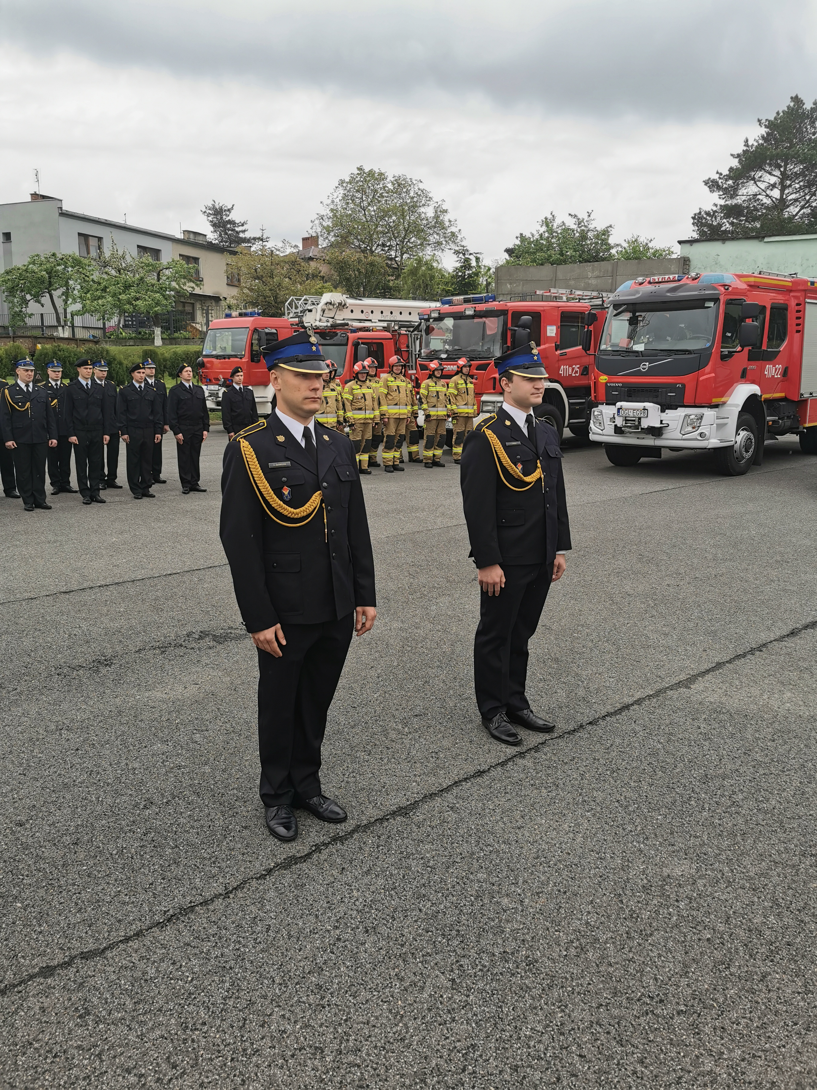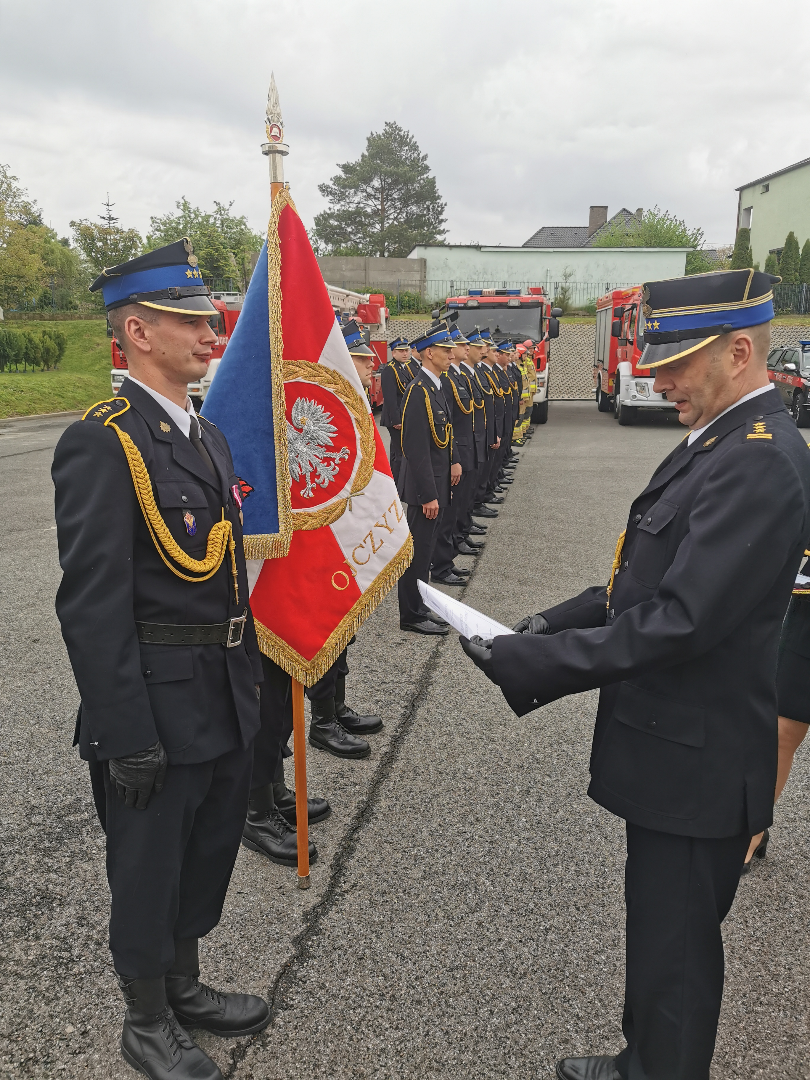 Uroczystość rozpoczęła się od złożenia meldunku Zastępcy Opolskiego Komendanta Wojewódzkiego PSP st. bryg. Arkadiuszowi Kuśmierskiemu przez dowódcę uroczystości st. kpt. Mateusza Szymusia.
