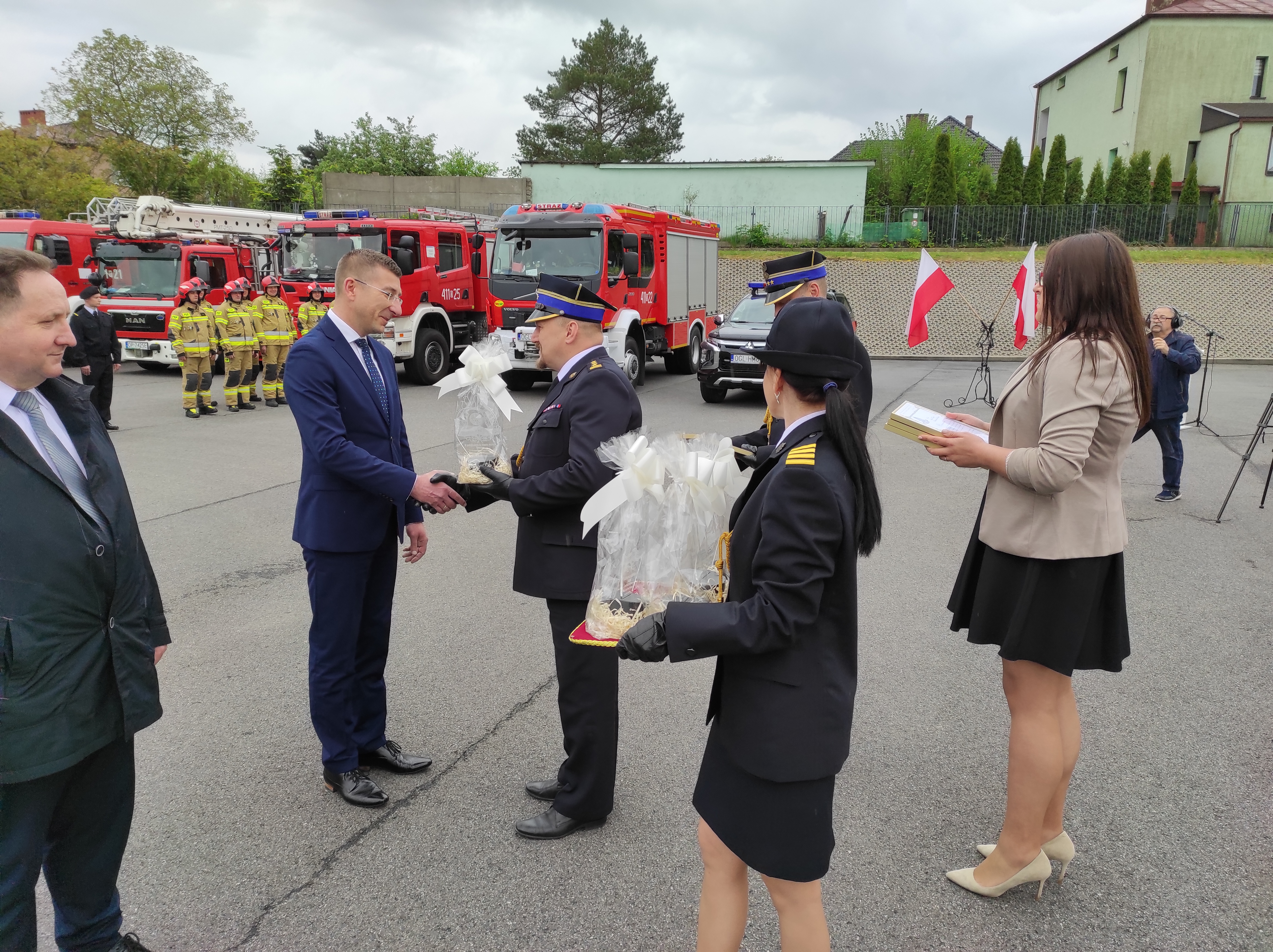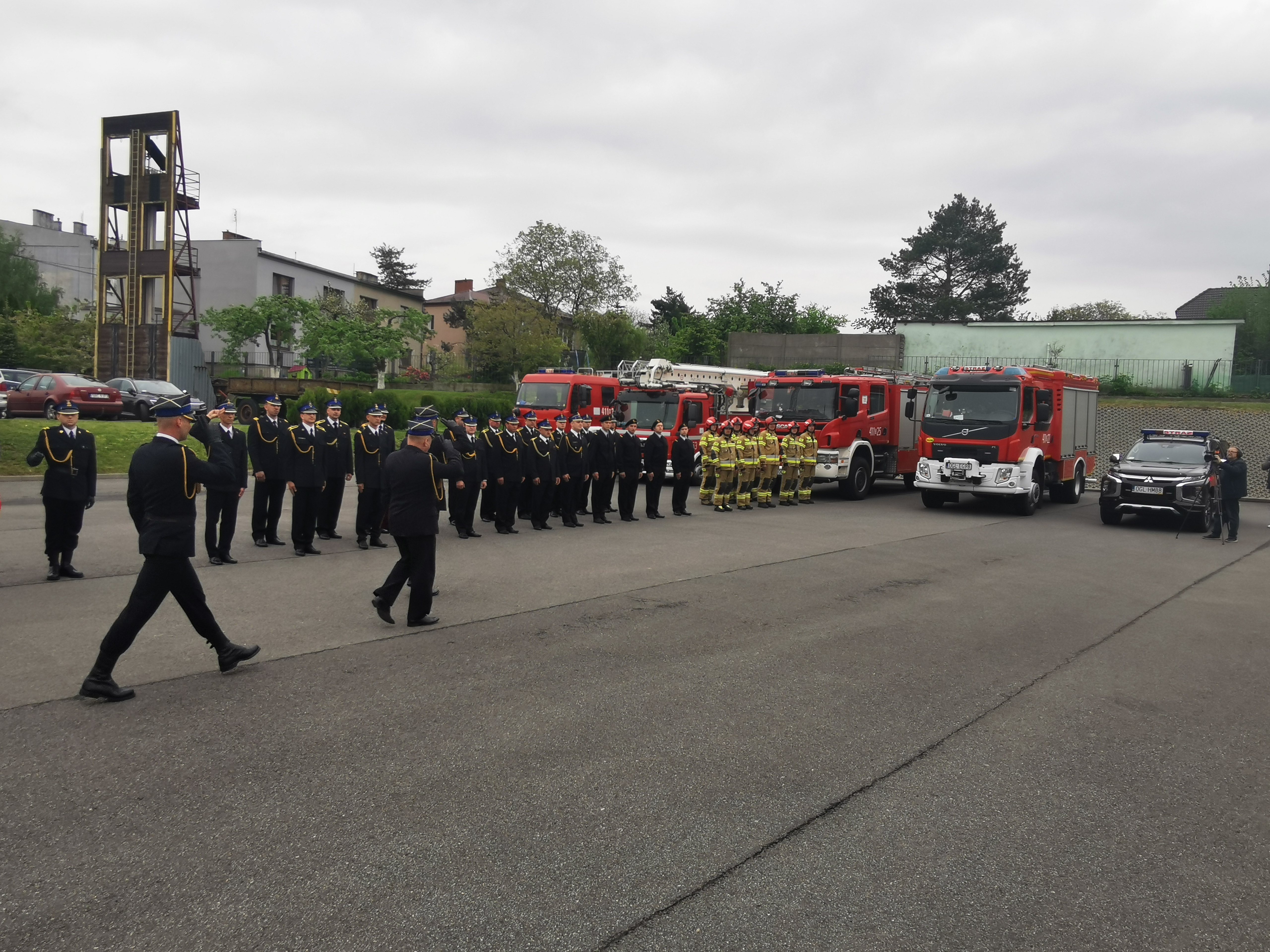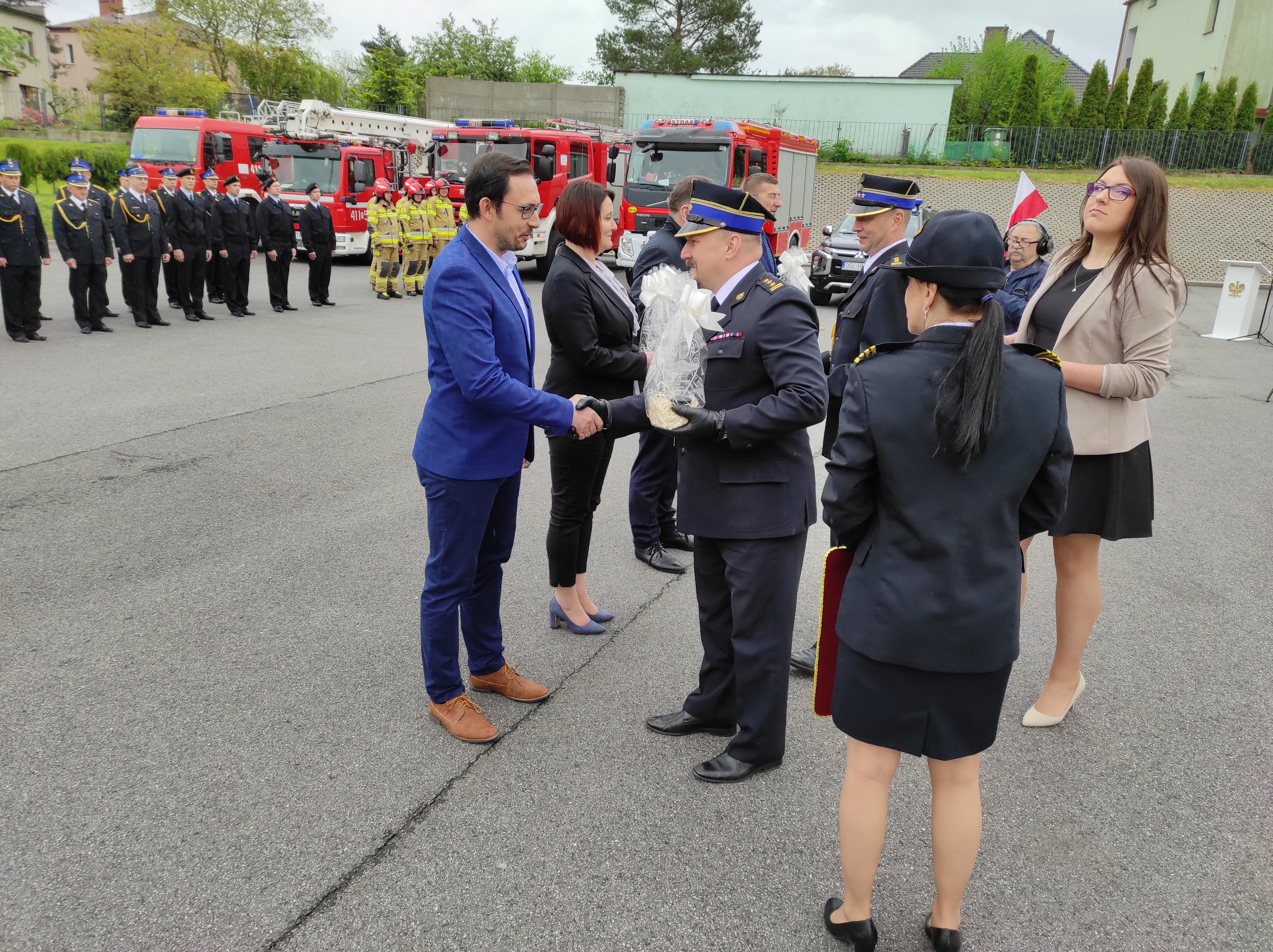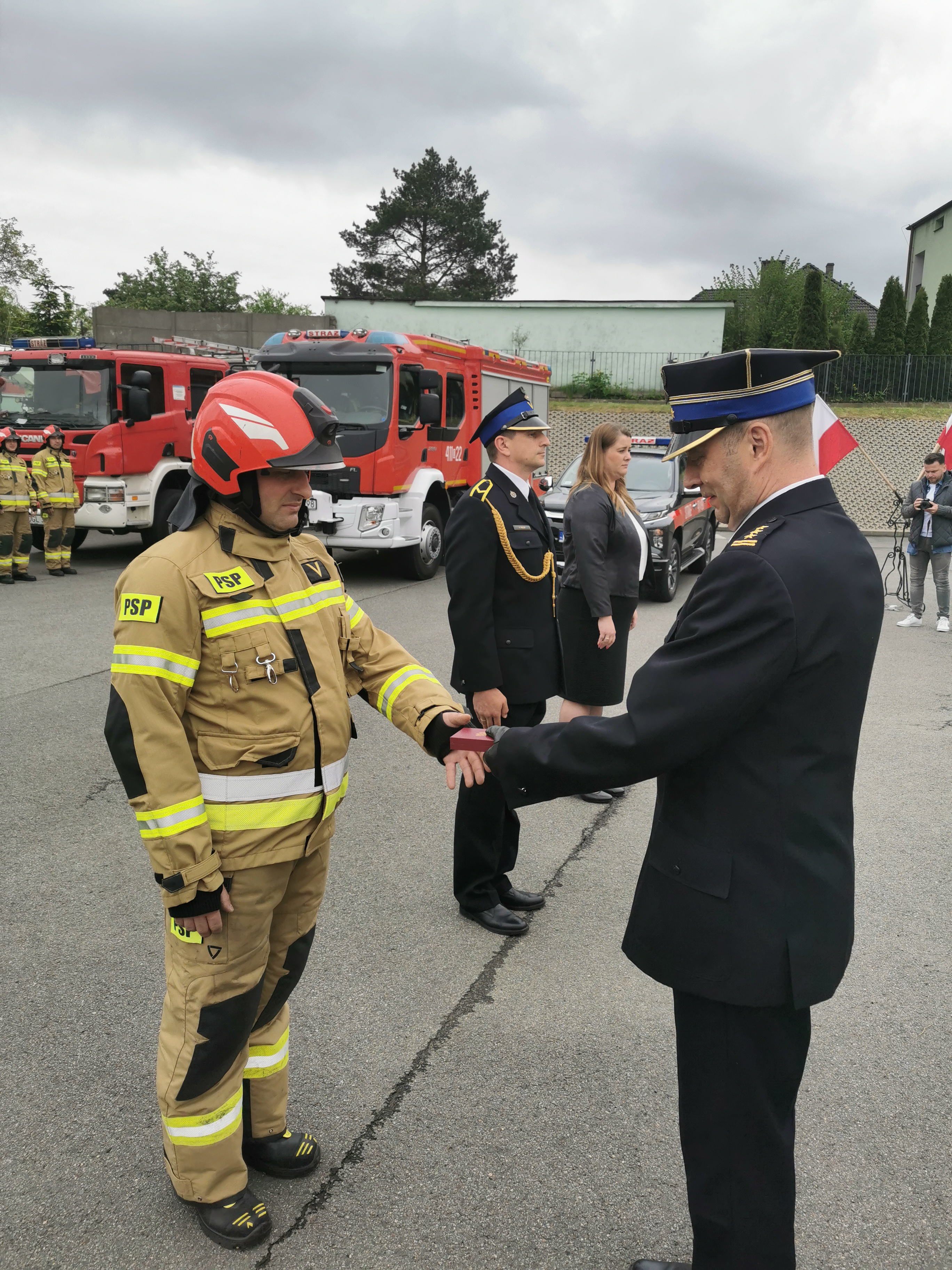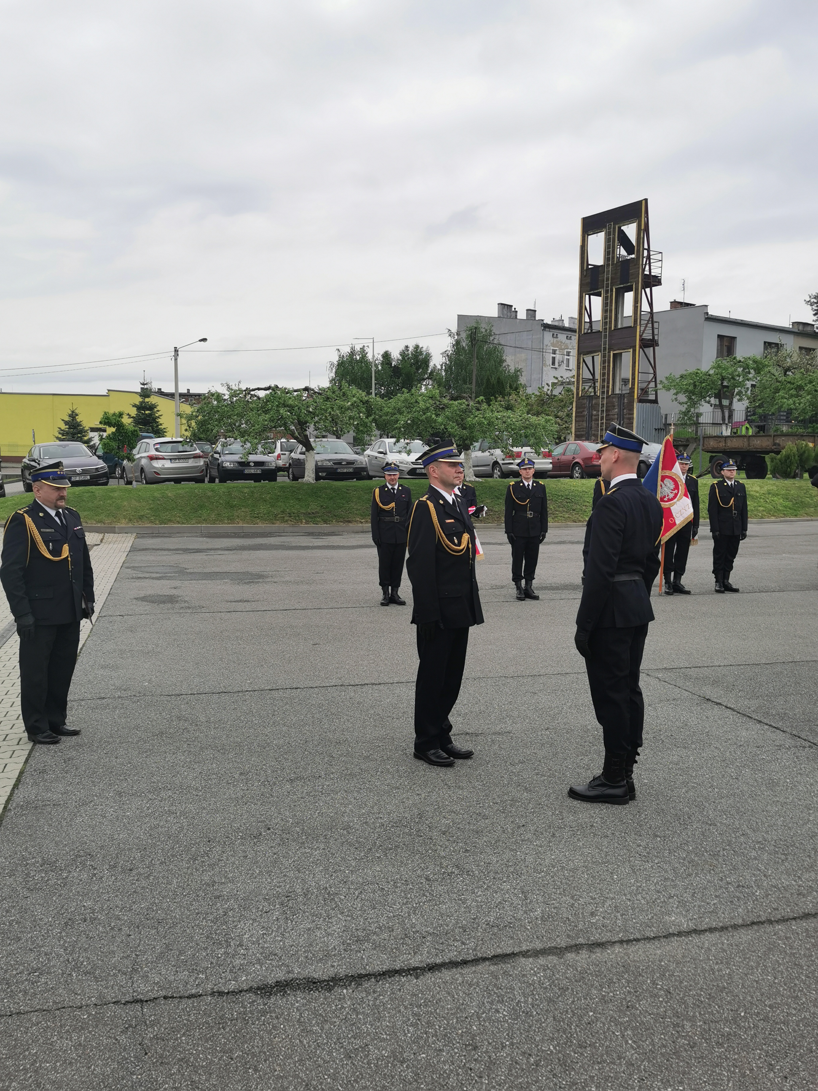 Uroczystość rozpoczęła się od złożenia meldunku Zastępcy Opolskiego Komendanta Wojewódzkiego PSP st. bryg. Arkadiuszowi Kuśmierskiemu przez dowódcę uroczystości st. kpt. Mateusza Szymusia.